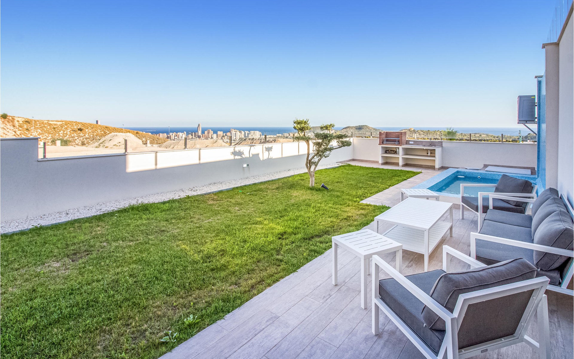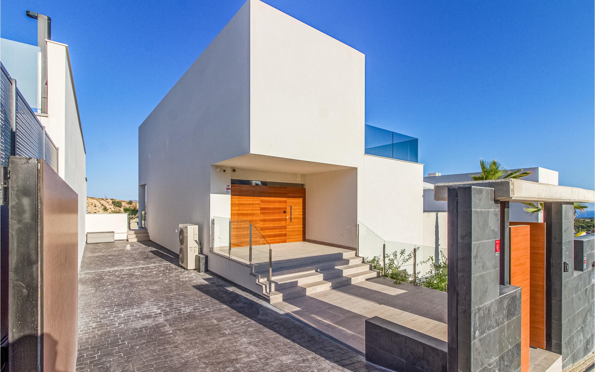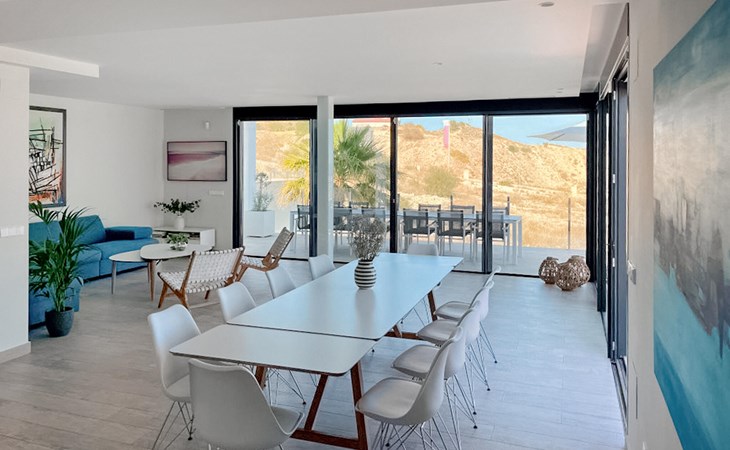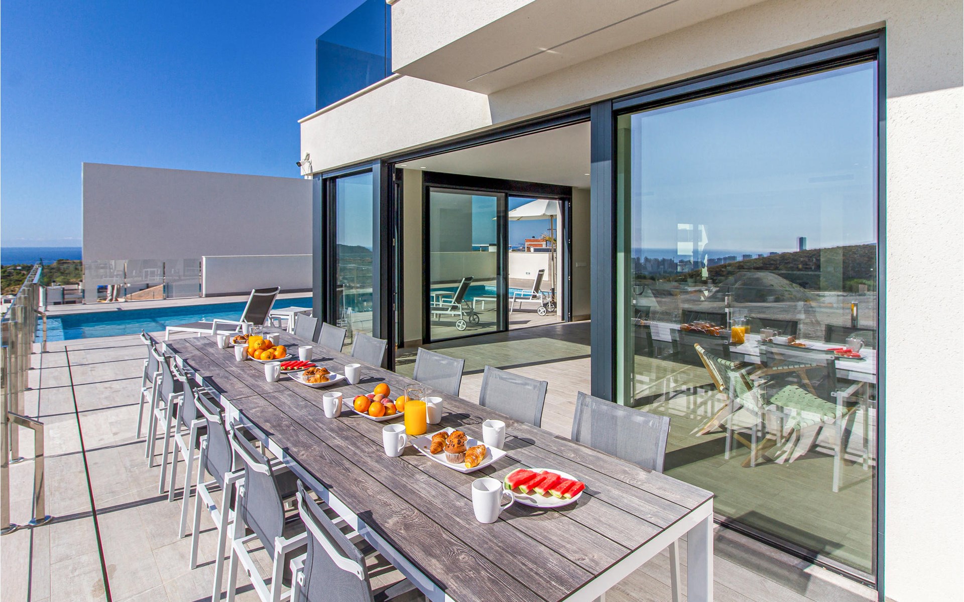 Je stijlvolle vakantiehuis in Finestrat combineert luxe comfort met een adembenemend uitzicht op de skyline van Benidorm en de Middellandse Zee. Binnen in de villa vind je lichte, open kamers met een minimalistische inrichting en een ontwerp van hoge kwaliteit. Het huis biedt ruimte voor een groot gezin. De volledig uitgeruste designkeuken en ruime eetgedeeltes nodigen uit om samen te eten, terwijl de grote ramen de kamers overspoelen met natuurlijk licht.