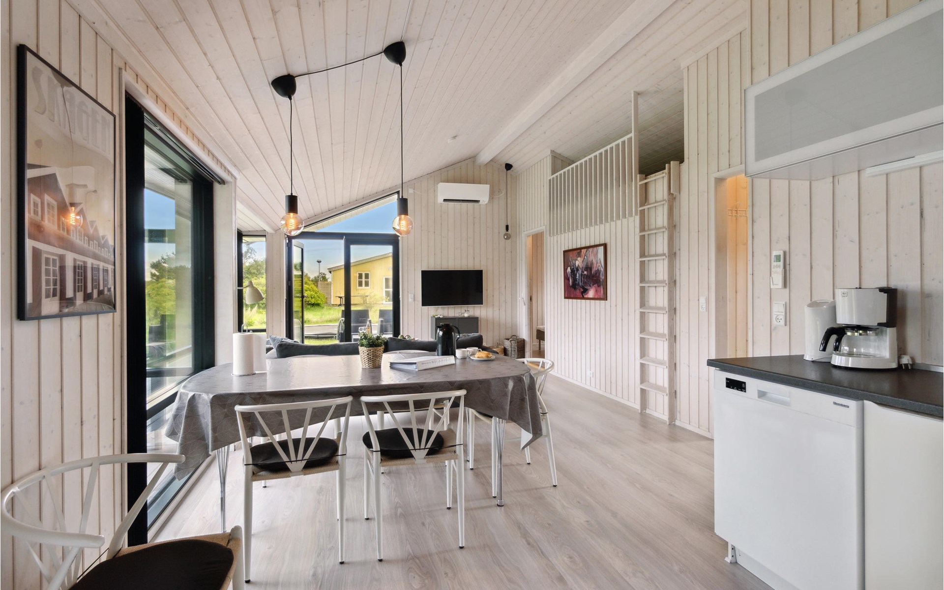 Op een zeer rustige locatie in het noorden van Skagen wacht dit vakantiehuis op zijn gasten, van hieruit ben je niet ver van de fantastische natuur en het bruisende leven in het centrum van Skagen. De lichte houten lambrisering en moderne inrichting geven de kamers hun charme en creëren de ideale setting voor een heerlijk uitje waar je strandplezier, natuurbeleving en spannende excursies ideaal kunt combineren. Een bijzonder hoogtepunt zijn de panoramische ramen, waardoor je een prachtig uitzicht hebt op de buitenlucht terwijl je eet of ontspant op de bank.