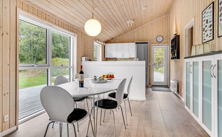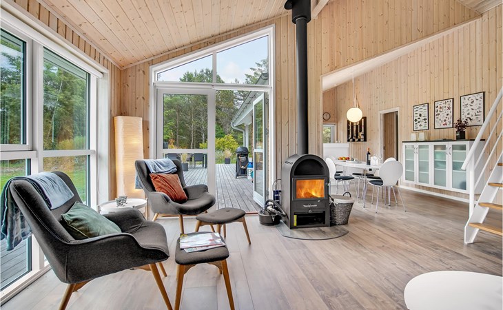 Breng met het gezin een onvergetelijke vakantie door in dit uitnodigende vakantiehuis, dat met zijn houten lambrisering en grote ramen licht en vriendelijk oogt. De woonkamer met de houtkachel is het gezellige hart van het huis, en op koele dagen en avonden kunt u zich ook opwarmen in de sauna.