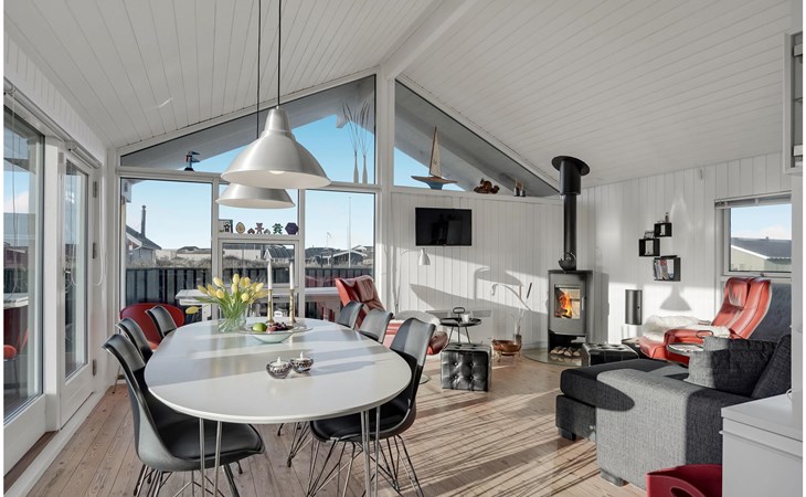 Stap met je gezin in dit prachtige vakantiehuis en beleef een ontspannen vakantie. Kom samen in de lichte woonkamer, speel kaart, geniet van een heerlijke maaltijd of kruip lekker op de bank bij het warme vuur in de houtkachel en kijk naar een leuke film. Het huis wordt aan alle kanten omringd door een prachtig terras, dat vanuit de woonkamers beschut ligt. Geniet van een paar uur in de zon of barbecue 's avonds je favoriete gerechten. Ondertussen kunnen je kinderen spelen, schommelen en springen op de speeltoestellen in de tuin.