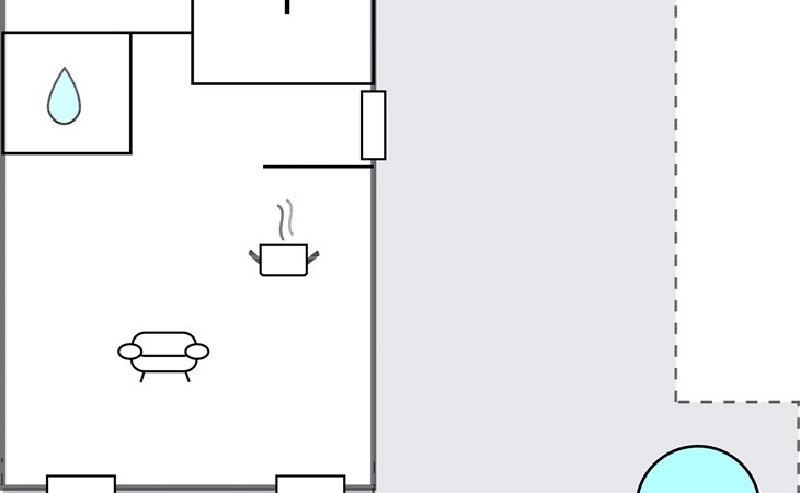 Op het grote omheinde terras tussen het huis en het bijgebouw zijn er plekken beschut tegen de wind waar je in comfortabele ligstoelen van de zon kunt genieten. Als je liever in de schaduw zit, kun je terecht op het overdekte terras. Op het terras vind je ook het Finse houten bad, waar je in het warme water kunt liggen en de sterrenhemel kunt bewonderen.