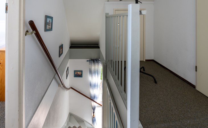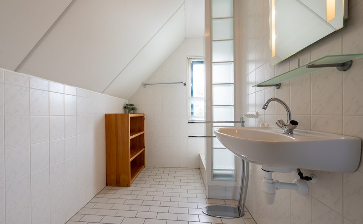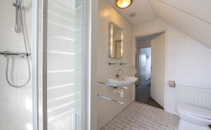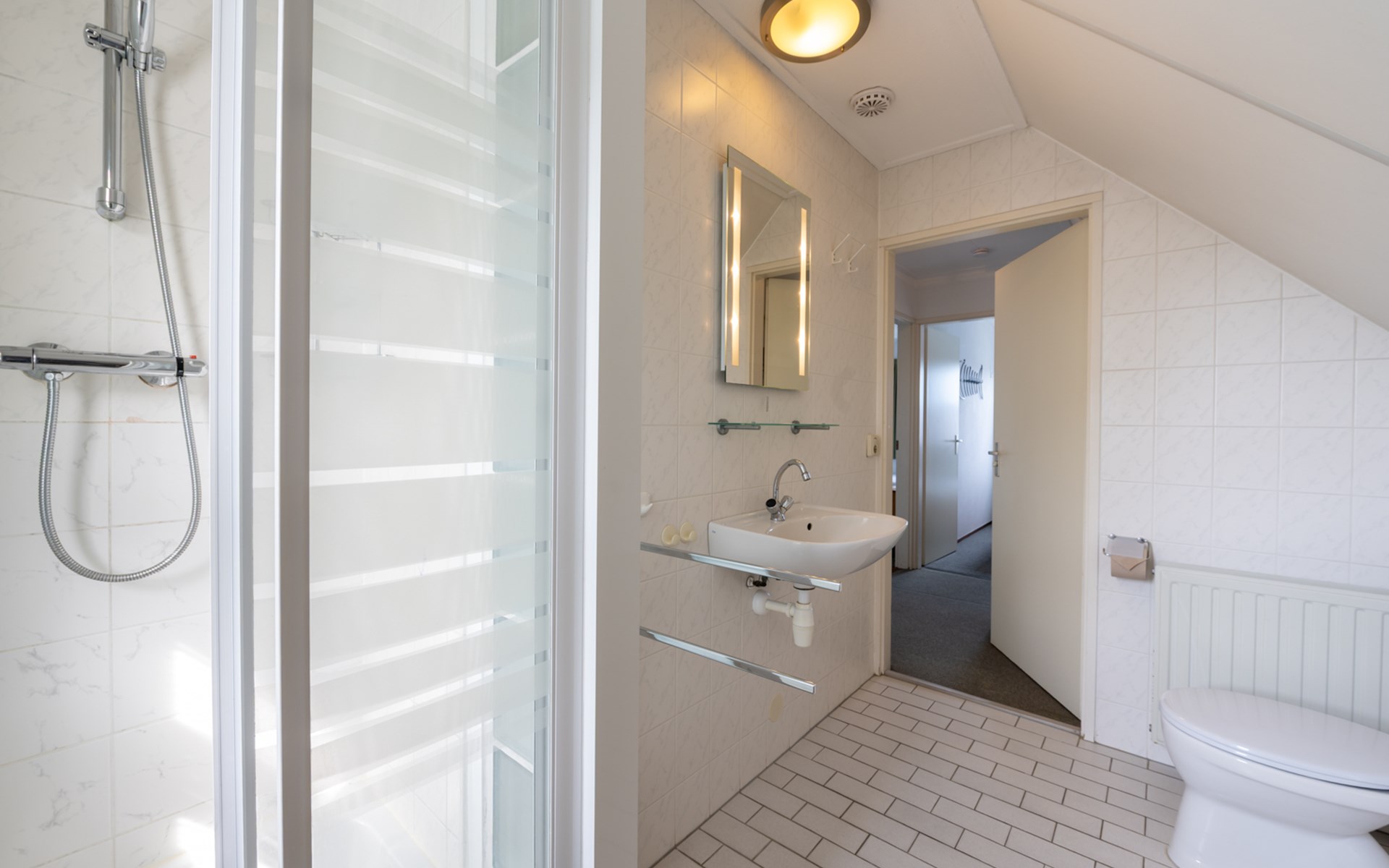 Op de verdieping bevinden zich drie riante slaapkamers en een badkamer. De slaapkamers zijn voorzien van enkele bedden. De badkamer is uitgerust met een douche, een wastafel en een toilet. In de gang is een apart gastentoilet.