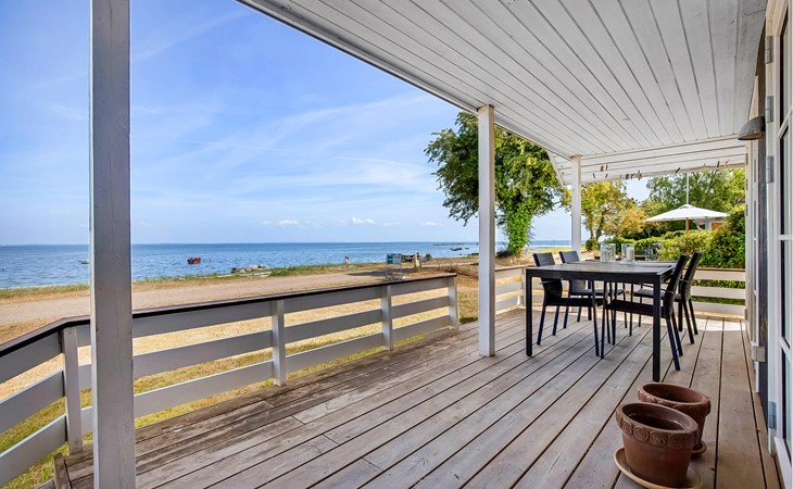 Dit charmante vakantiehuis met uitzicht op zee ligt op een fantastische locatie direct aan het strand van Grönninghoved.