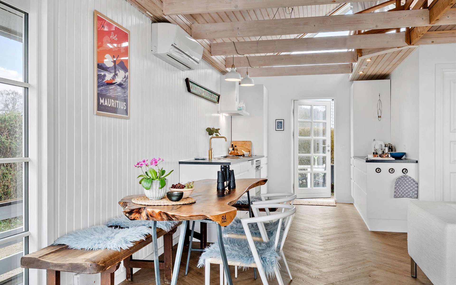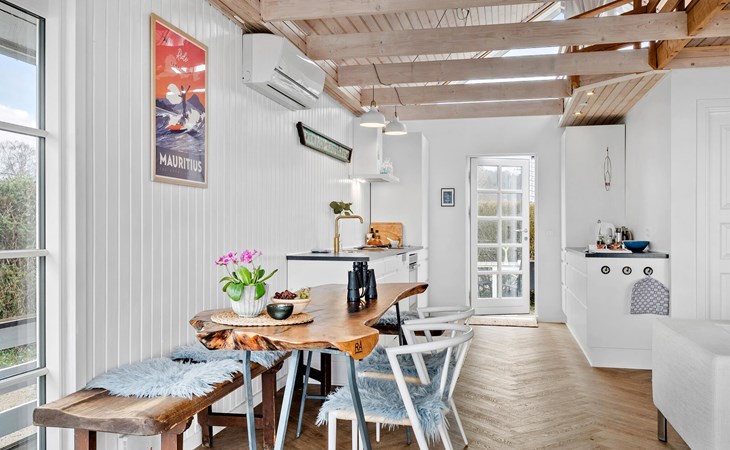 Dit mooie en gezellige vakantiehuis schittert in moderne pracht met een geweldige slaapzolder, waar je in slaap kunt vallen en weer wakker kunt worden met uitzicht op de golven. Het gezellige open ontwerp van de andere kamers nodigt je ook uit om te ontspannen en tot rust te komen in een lichte, maritieme omgeving. Maak 's ochtends je ontbijt klaar in de keuken, zet koffie en geniet van je ontbijt op de veranda met uitzicht op de Kleine Belt.