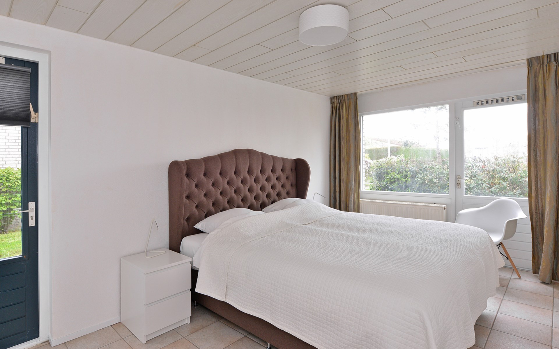 De entree van de woning biedt toegang tot vier ruime slaapkamers, waarvan drie slaapkamers met een tweepersoonsbed op de begane grond en een slaapkamer met twee éénpersoonsbedden op de eerste verdieping. Er zijn drie badkamers. Een badkamer met bad, wastafel en toilet, een badkamer met douche en wastafel en een badkamer met douche, dubbele wastafel en toilet.