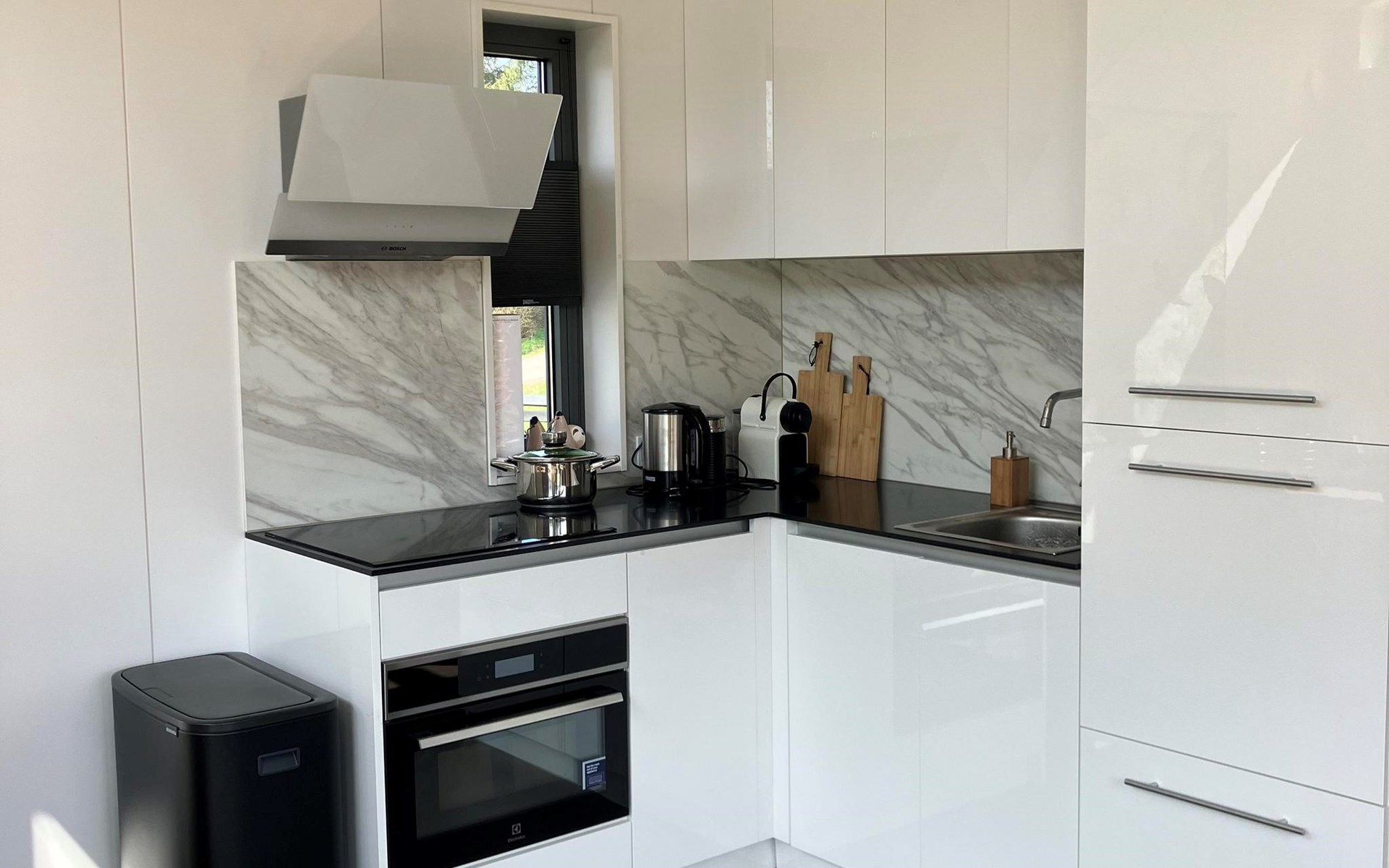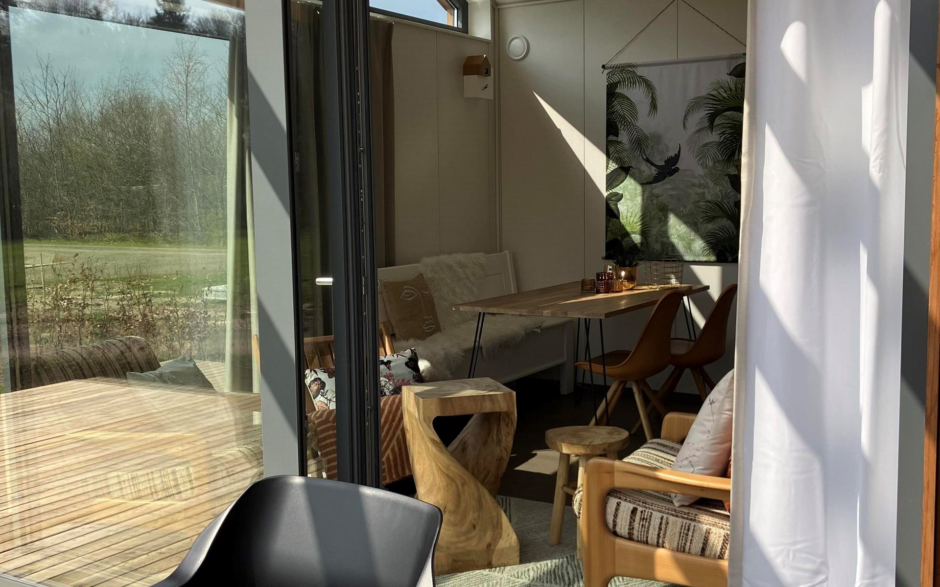 In de gezellige huiskamer met open keuken kan je alles vinden wat je nodig hebt. In de keuken zijn aanwezig: Nespresso, melkopschuimer, mixer, broodrooster, waterkoker, koelkast/vriezer, luxe pannensert fijne oven, vaatwasser, elektrische kookplaat (4-pits). Er is geen televisie aanwezig, maar met zoveel mooie natuur heb je dat helemaal niet nodig. Natuurlijk is er goede WiFi, dus een film kijken kan zeker. In de kleine, maar fijne badkamer vind je een lekkere douche, toilet en een wastafel. In het hele huisje ligt vloerverwarming, zodat je in de wintermaanden geen koude voeten krijgt.