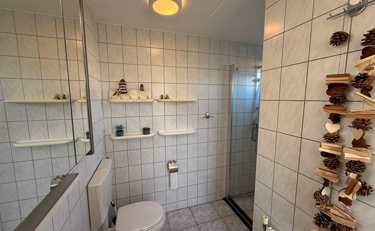 Ook op de begane grond vindt u de badkamer met douche, wastafel en toilet. Daarnaast is er een tweede, apart toilet aanwezig. Twee slaapkamers