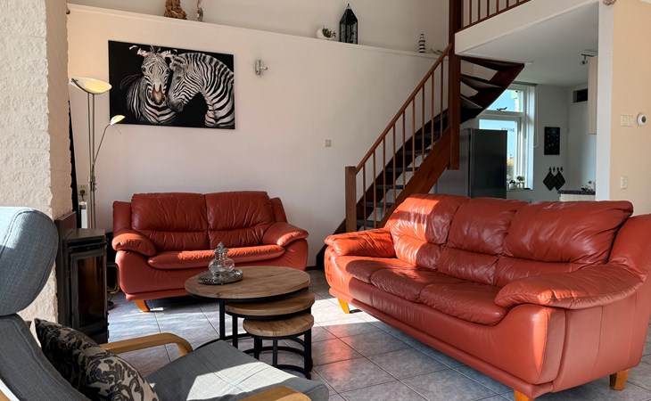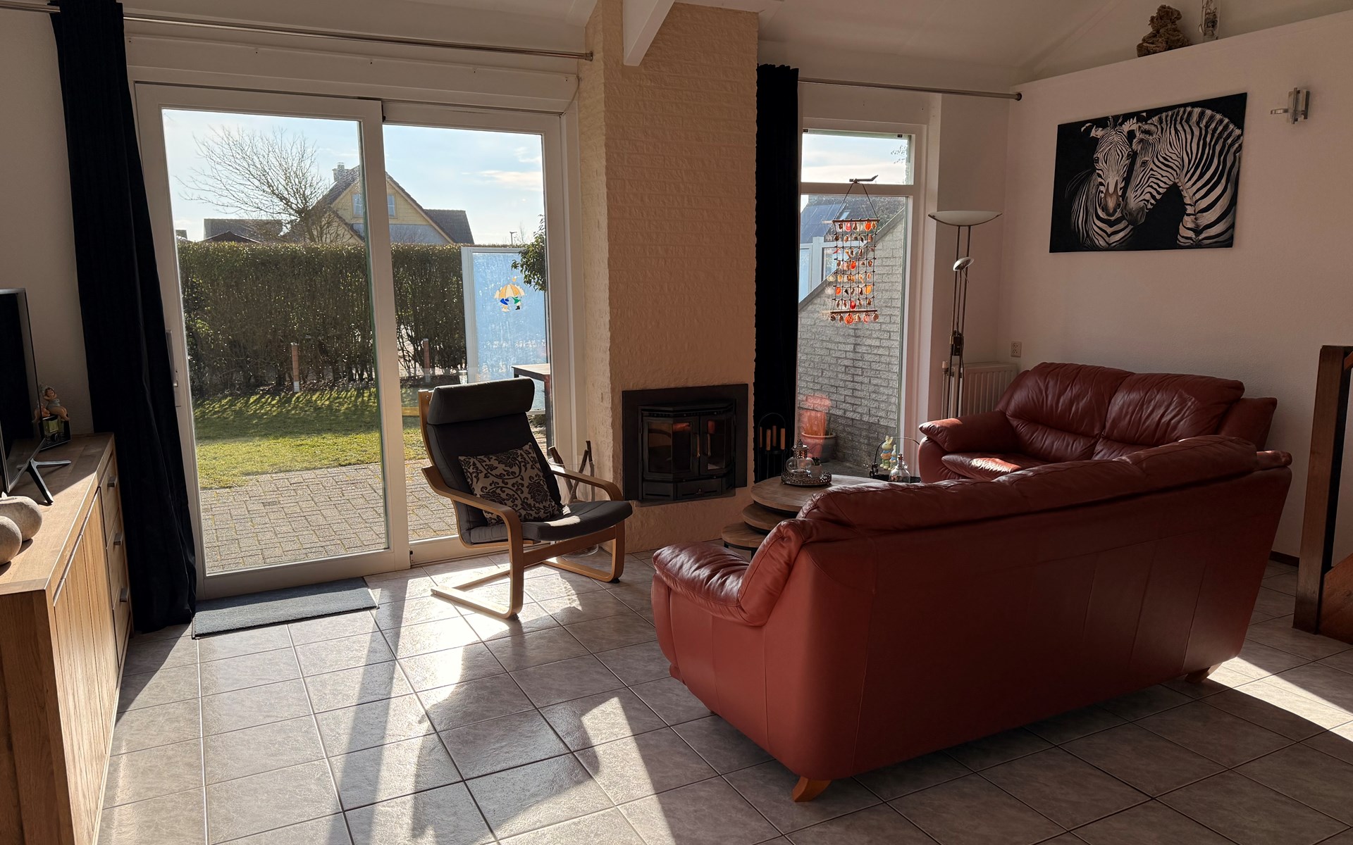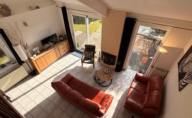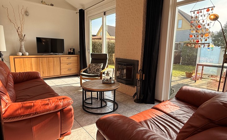 Op de begane grond bevindt zich de woonkamer met open keuken. De woonkamer is voorzien van een open haard, gezellige zithoek en een grote schuifpui naar de tuin. Zo loopt u op zonnige dagen direct uw eigen terras op, een fijne plek om te ontspannen met een kop koffie of een goed boek.