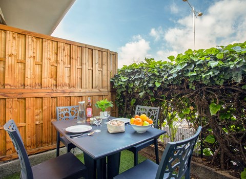 Neem plaats op het kleine balkon op het zuiden en geniet van een vers gezette koffie in de ochtend of trakteer jezelf op een glas wijn in de avond terwijl je de rustige sfeer van deze plek opsnuift.