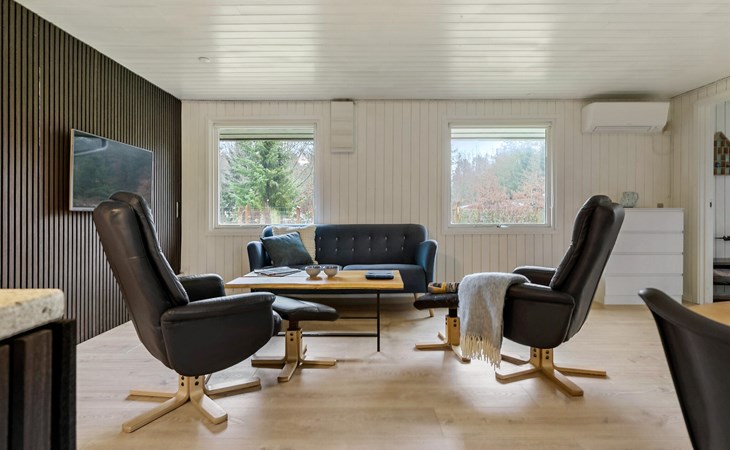 Stap binnen in dit liefdevol ontworpen vakantiehuis en maak het jezelf comfortabel in het stijlvolle interieur met warme houten elementen. Serveer stevige maaltijden in de uitnodigende eethoek en steek 's avonds de houtkachel aan om bordspellen te spelen of een film te streamen in de gezellige sfeer van de woonkamer.