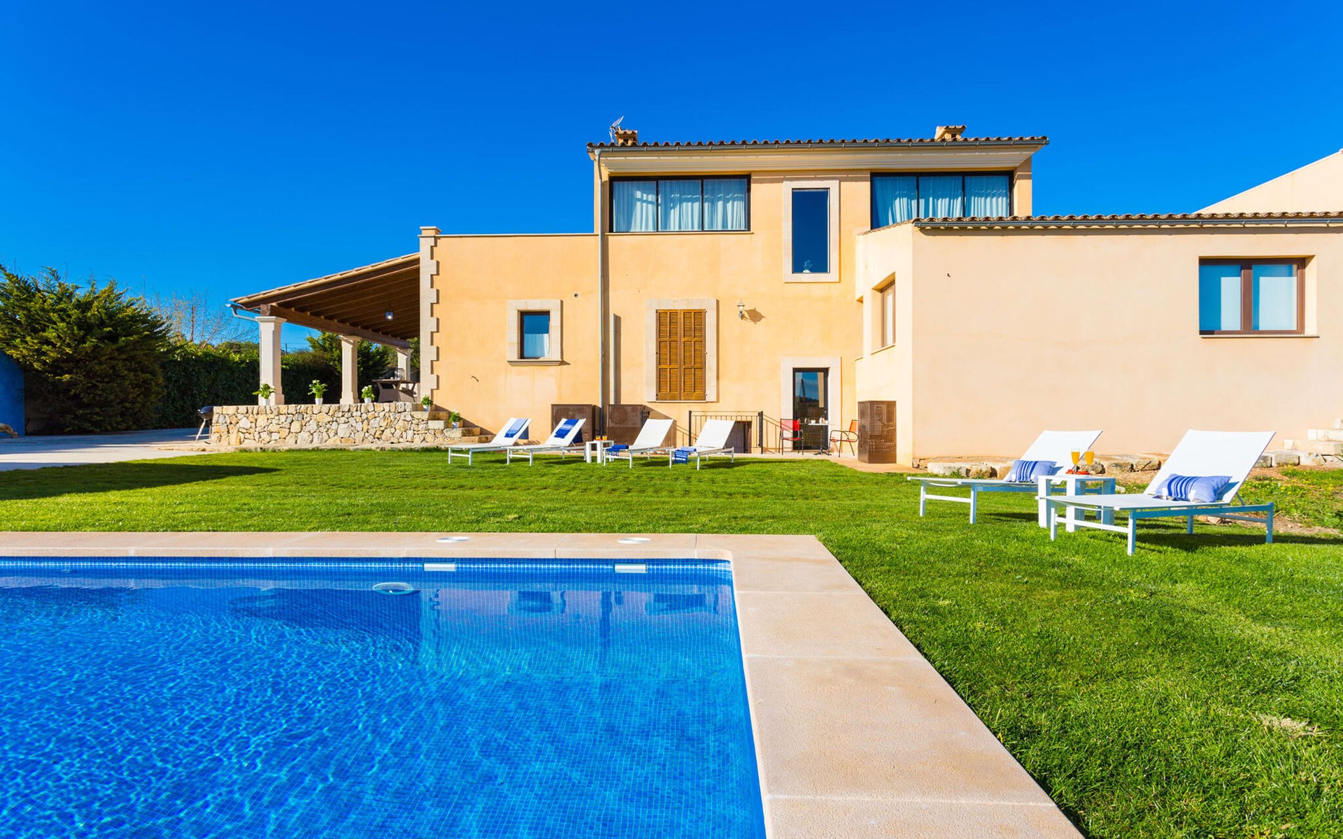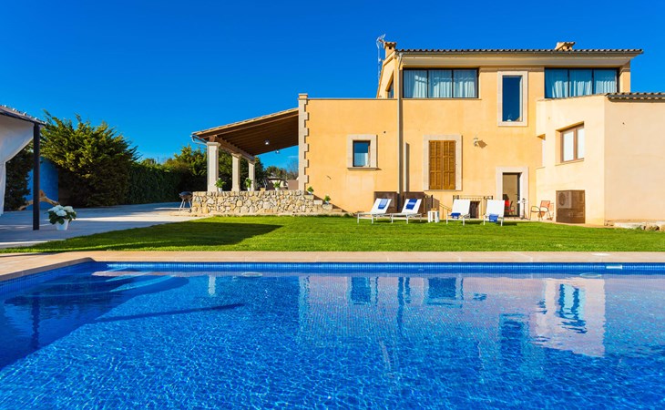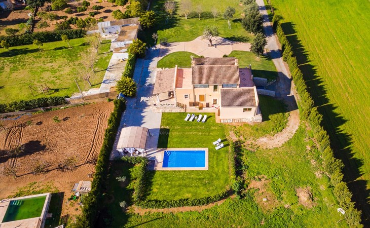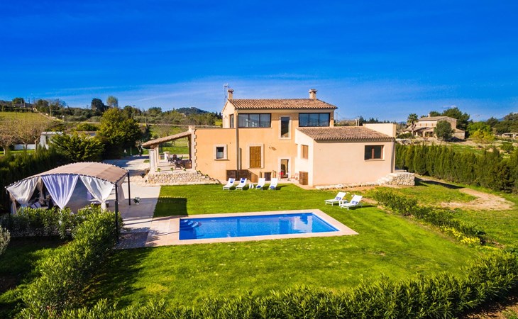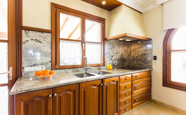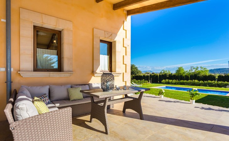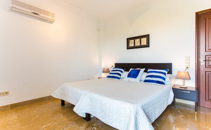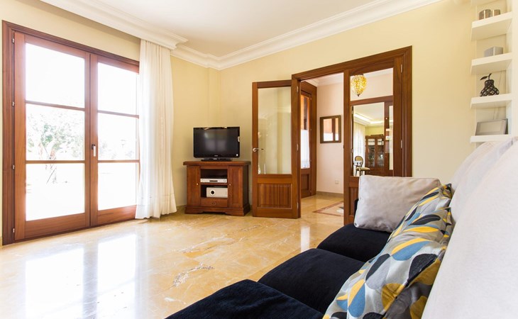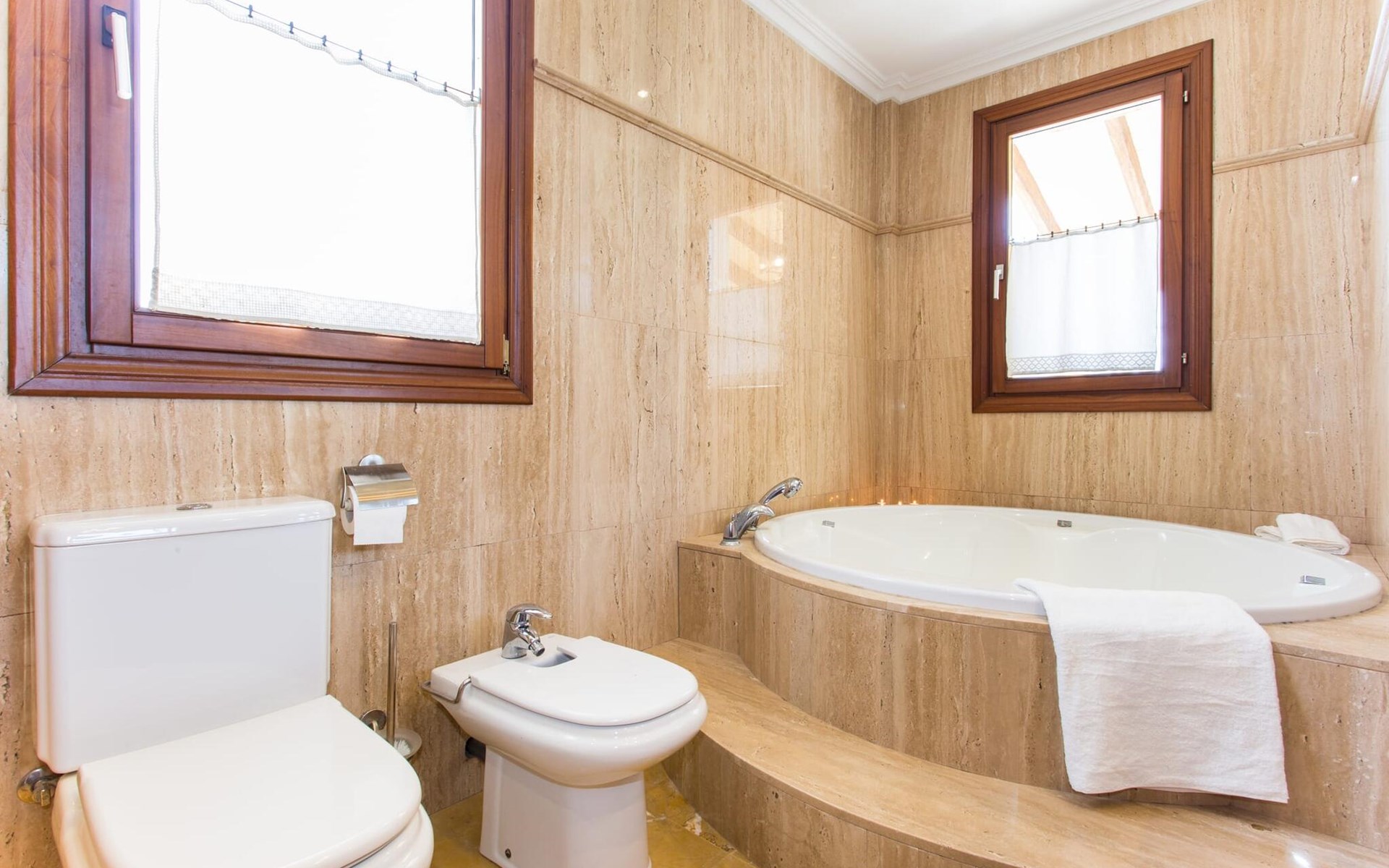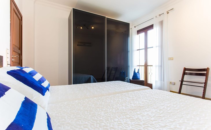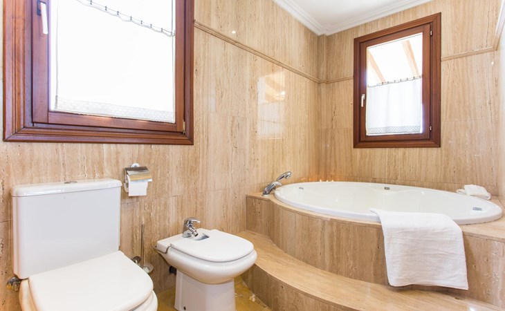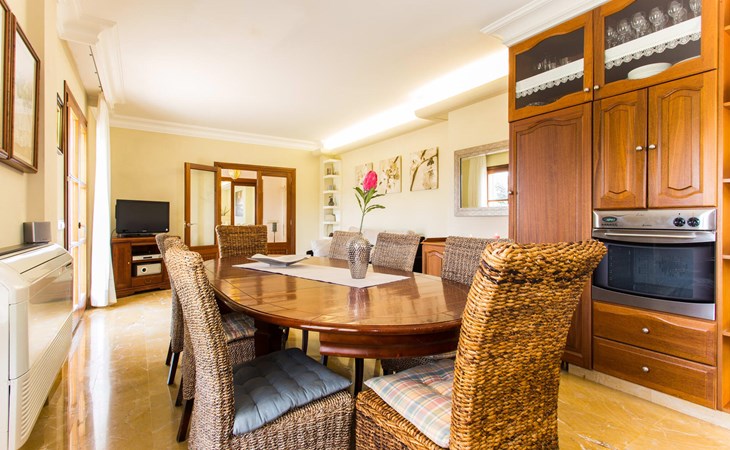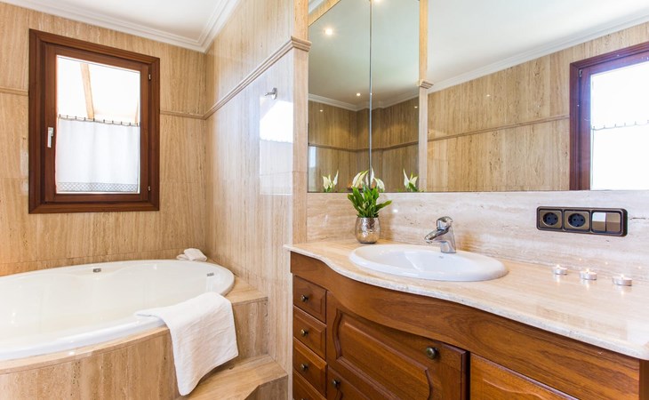 Vanaf de achterkant gezien lijkt het huis ietwat labyrintisch. Het interieur volgt echter een aangenaam heldere structuur. Ook al is de villa enkele jaren geleden gebouwd, het is geen oude rommel! Bovendien presenteert het zich als een rustieke juwelenkist met een hoogwaardige inhoud, waarvan de benedenverdieping beschikbaar is voor vakantiegangers op Mallorca (de bovenverdieping wordt niet verhuurd). Gezellige tweezitters en fauteuils staan verspreid over de woonkamer, zodat je samen kunt zijn zonder op elkaars schoot te zitten. Een ander alternatief is de ruime eetkeuken met bank en tweede tv en de tafel, die niet alleen uitnodigend is tijdens het eten: Er is geen ruzie over het tv-programma of de beste tribuneplaatsen. De vier gezellige slaapkamers met airconditioning zijn functioneel ingericht, de twee moderne binnenbadkamers (waarvan één en-suite) zijn heerlijk uitgerust; ze hebben een (hoek)bad of douche en schitteren met veel marmer en stevige houten kasten. Daarnaast zijn er, zoals gezegd, buitenfaciliteiten zodat iedereen zich op elk moment kan verfrissen. Over winnen gesproken: Llum verdient zeker een award in de categorie aanbevolen vakantiehuizen!
