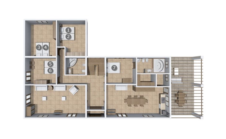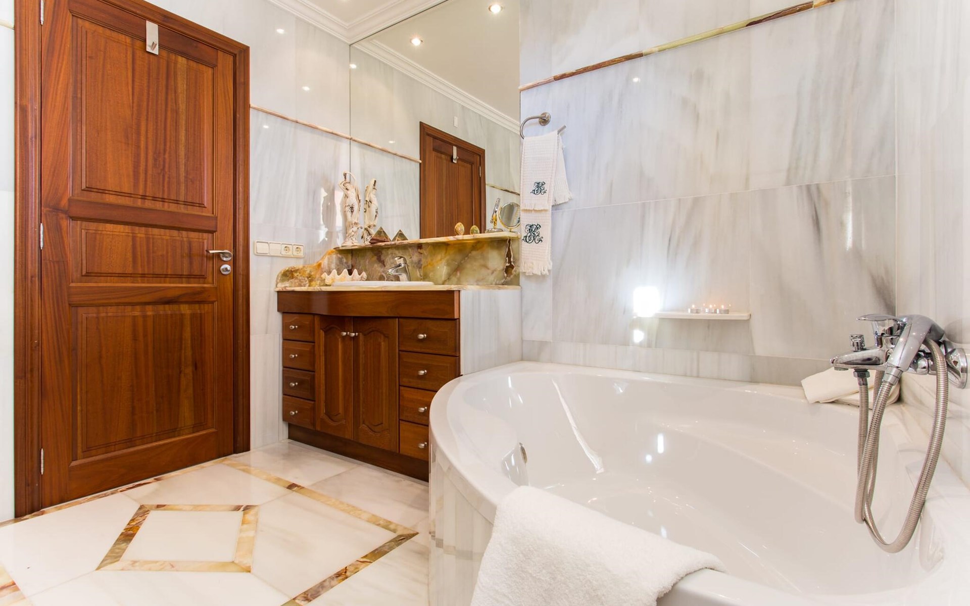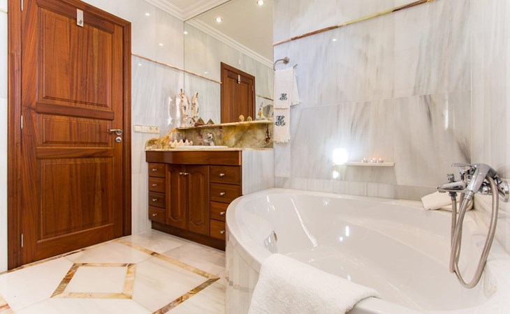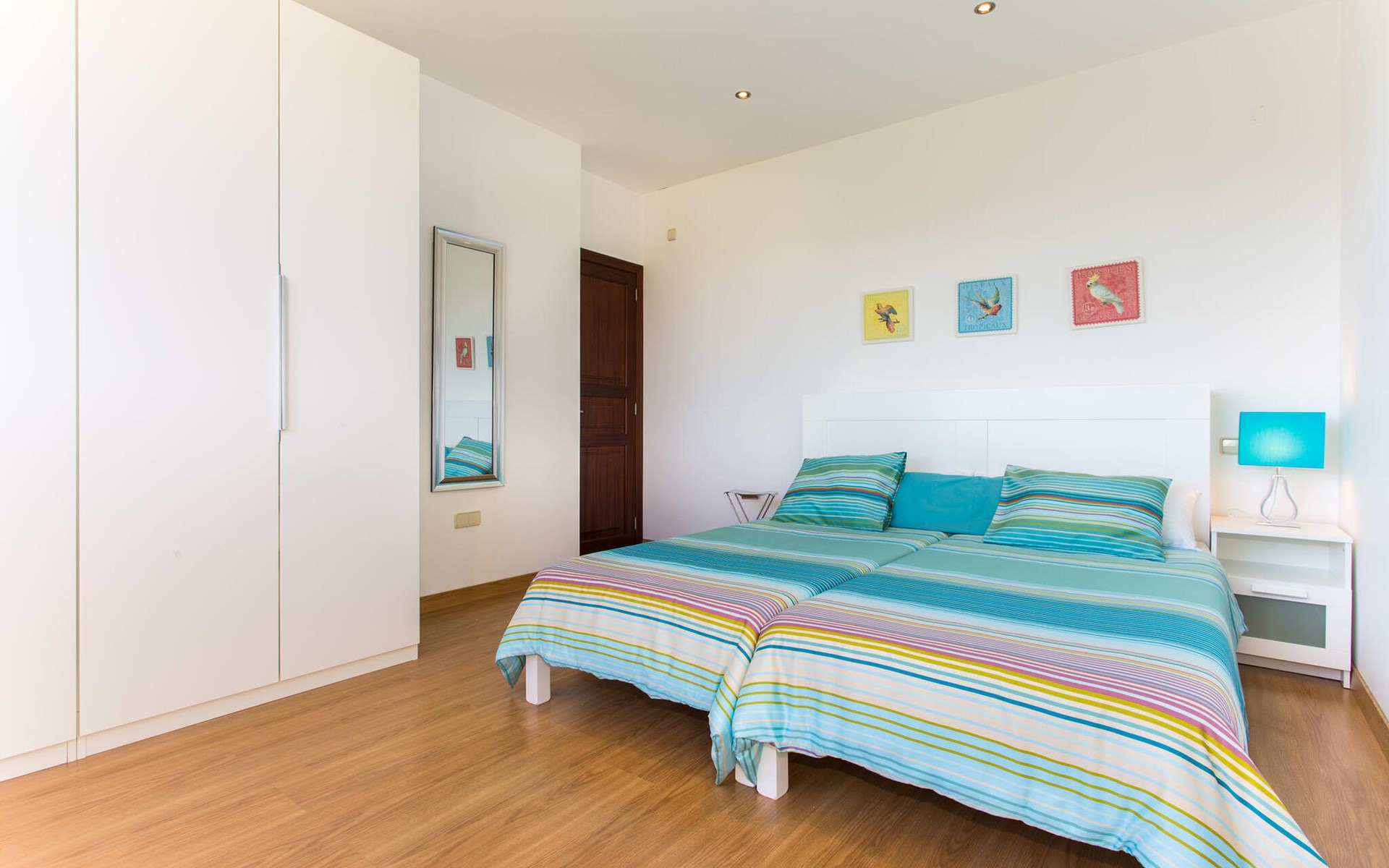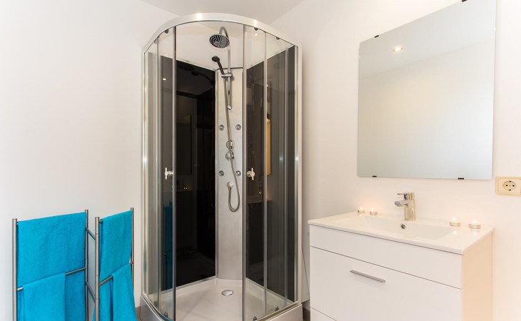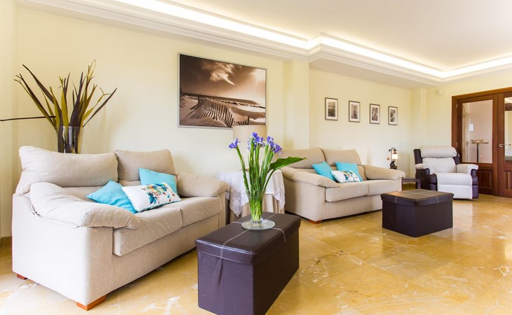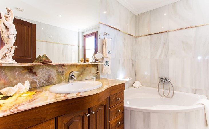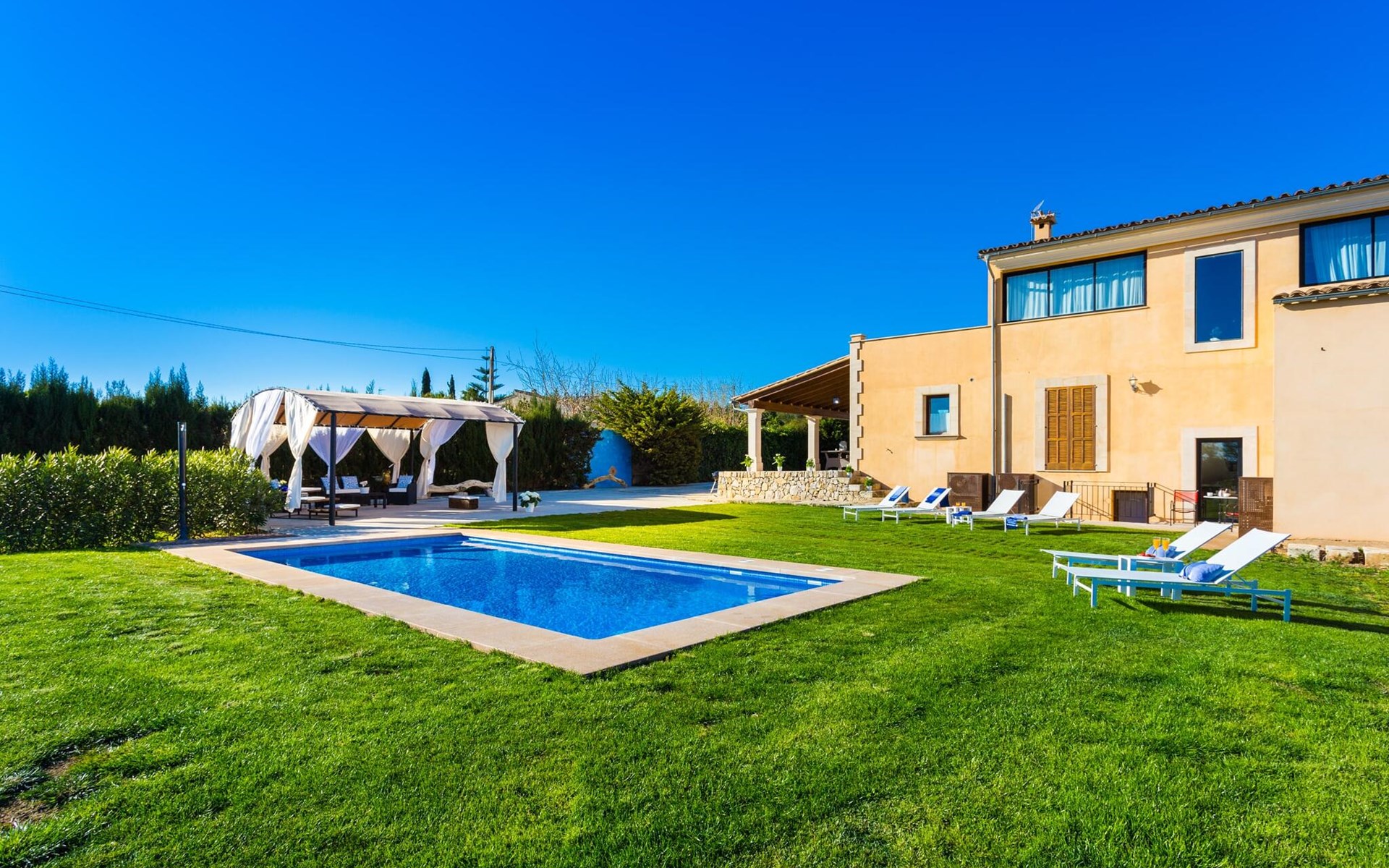 Vanaf de achterkant gezien lijkt het huis ietwat labyrintisch. Het interieur volgt echter een aangenaam heldere structuur. Ook al is de villa enkele jaren geleden gebouwd, het is geen oude rommel! Bovendien presenteert het zich als een rustieke juwelenkist met een hoogwaardige inhoud, waarvan de benedenverdieping beschikbaar is voor vakantiegangers op Mallorca (de bovenverdieping wordt niet verhuurd). Gezellige tweezitters en fauteuils staan verspreid over de woonkamer, zodat je samen kunt zijn zonder op elkaars schoot te zitten. Een ander alternatief is de ruime eetkeuken met bank en tweede tv en de tafel, die niet alleen uitnodigend is tijdens het eten: Er is geen ruzie over het tv-programma of de beste tribuneplaatsen. De vier gezellige slaapkamers met airconditioning zijn functioneel ingericht, de twee moderne binnenbadkamers (waarvan één en-suite) zijn heerlijk uitgerust; ze hebben een (hoek)bad of douche en schitteren met veel marmer en stevige houten kasten. Daarnaast zijn er, zoals gezegd, buitenfaciliteiten zodat iedereen zich op elk moment kan verfrissen. Over winnen gesproken: Llum verdient zeker een award in de categorie aanbevolen vakantiehuizen!