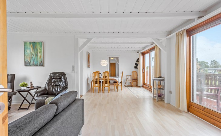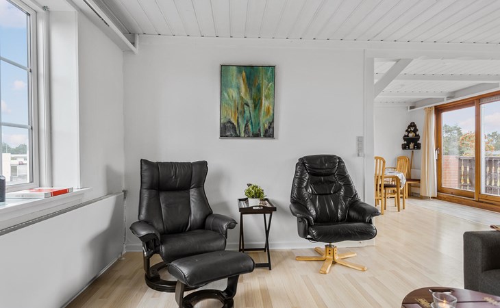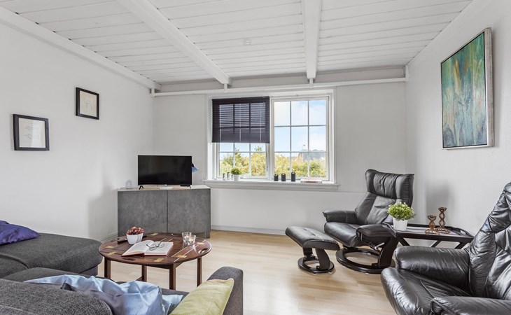 Je ruime vakantiewoning in Rudkøbing biedt je lichte, ruime kamers, gezellige meubels en een prachtig uitzicht op de zee en de Langelandbrug. Begin je dag met een stevig ontbijt in de lichte eethoek, die een fantastisch uitzicht biedt door de grote glazen deuren. Gebruik de tijd om je dag te plannen en bespreek de vele excursiemogelijkheden in de omgeving bij een kopje koffie aan de eettafel. Ontspan daarna in de gezellige woonkamer, die is ingericht met comfortabele fauteuils en banken. Hier kun je in alle rust een boek lezen of een film kijken.