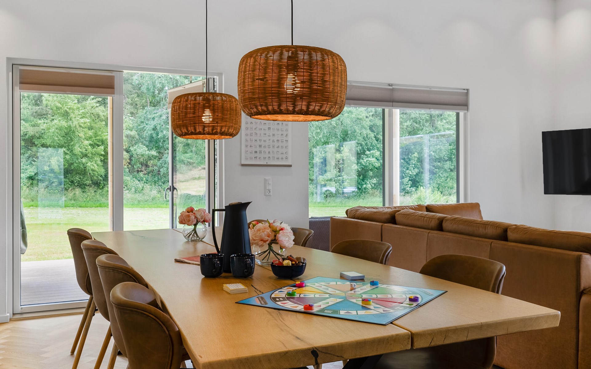 Welkom in deze idyllische accommodatie, die u een ontspannen vakantie te midden van een schilderachtig landschap biedt. Het huis maakt indruk met zijn stijlvolle ambiance. Begin de dag met een stevig ontbijt, dat je kunt bereiden in de elegante, open keuken, en bespreek je plannen voor de dag aan de mooie eettafel. De grote ramen in de woonkamer laten veel natuurlijk licht binnen en creëren een aangename sfeer, ideaal om achterover te leunen en te genieten van de vredige omgeving.