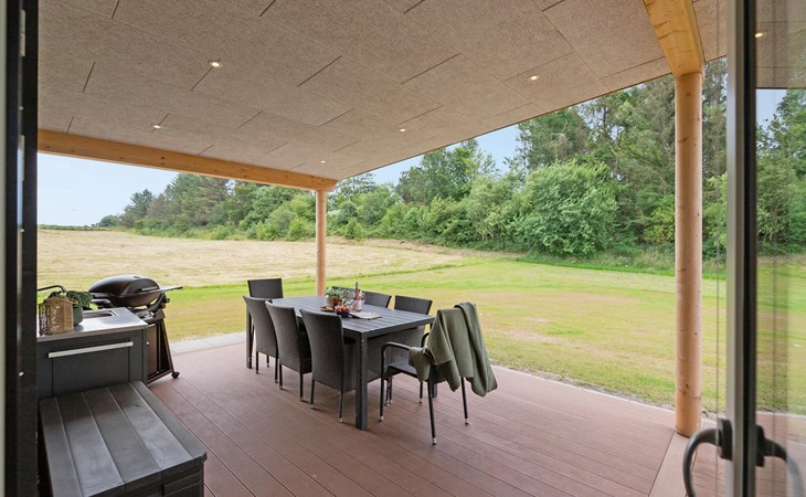 Een bijzonder hoogtepunt is het overdekte terras, dat je talloze mogelijkheden biedt om volop van de frisse lucht te genieten. Dineer al fresco of ontspan gewoon in de buitenlucht. s Avonds nodigt de barbecue je uit voor gezellige BBQ-avonden, waar je de dag gezellig kunt afsluiten. Voor nog meer ontspanning is er een sauna en een whirlpool in de buitenlucht - heerlijke plekken om lichaam en geest te verwennen na een veelbewogen dag.