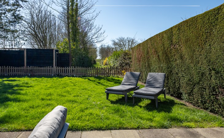 De woonkamer is heerlijk licht en gericht op het zuiden. Een schuifpui geeft toegang tot de dichtbegroeide beschutte tuin en het terras met comfortabele tuinmeubelen en twee ligbedden. In de woonkamer vindt u een comfortabele zithoek met een flatscreen TV. De open keuken is volledig uitgerust met moderne kwaliteitsapparatuur. U vindt hier onder anderen een combi magnetron, vaatwasser, Nespresso machine. Op de benedenverdieping bevindt zich een slaapkamer met een lits-jumeaux en een badkamer met een dubbele wastafel en douche. In de hal is een gastentoilet.
