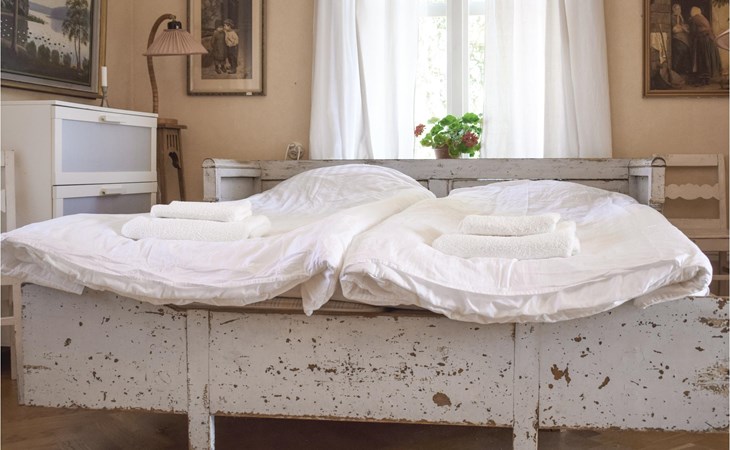 Rådman Lincks Gård biedt een charmante omgeving voor de vakantiewoning op de bovenste verdieping van een historisch, cultureel belangrijk huis uit de 18e eeuw. Het is gelegen aan Storgatan in het midden van Vimmerby. Rustig gelegen in het oudste deel van Vimmerby, waar de pittoreske houten huizen staan. U vindt er een hoog plafond, mooie oude details en een tegelkachel. Het balkon ligt op het westen. Gordijn tussen de grote woonkamer met slaapkamer en de andere slaapkamer. Lichte, gezellige sfeer in de stijl van vroeger. De eigenaar heeft een rommelmarkt op de binnenplaats. Astrid Lindgren's Värld en Näs zijn op loopafstand. Parkeren op het erf gedurende de nacht.