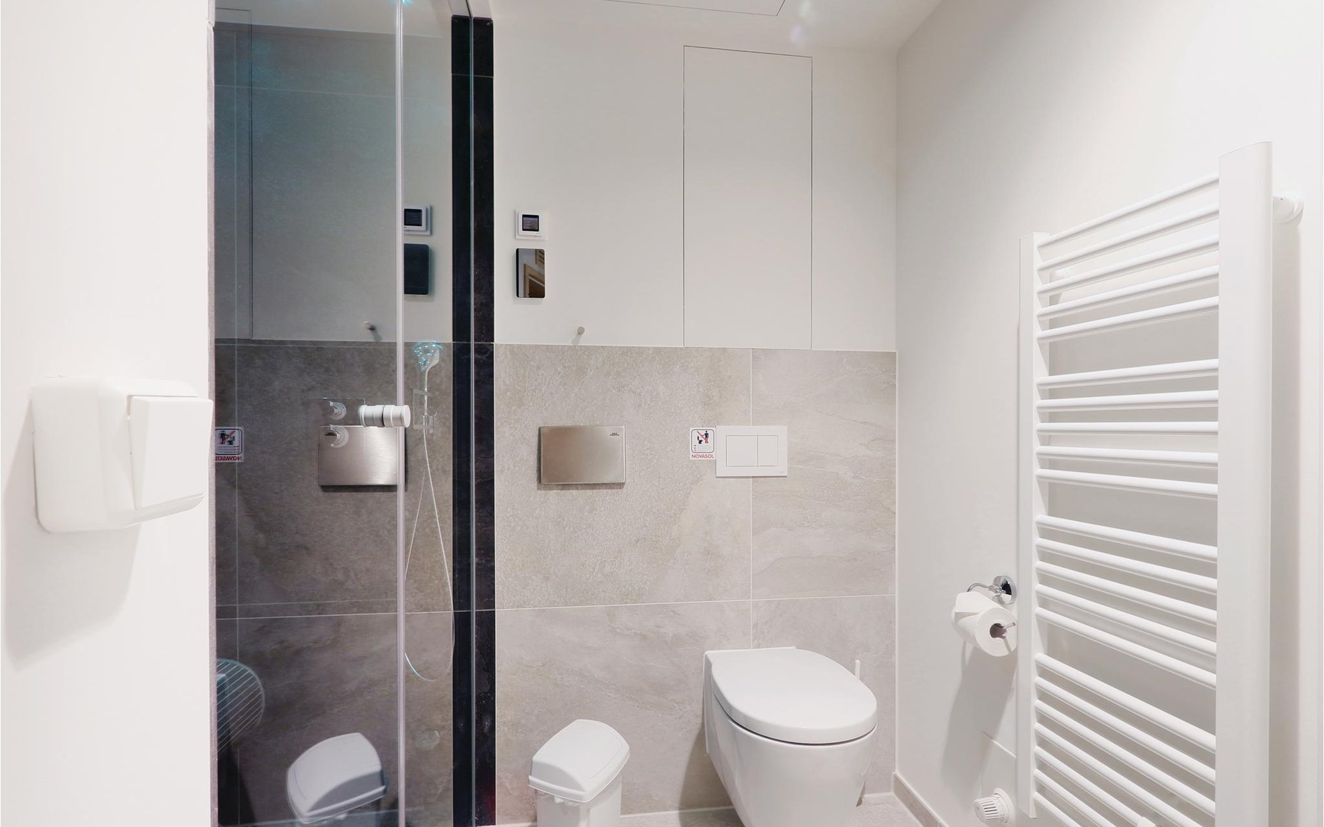 De badkamer presenteert zich als uw persoonlijke wellnessruimte. Hier kunt u opwarmen in de sauna na een lange wandeling op de Oostzee. De badkamer heeft ook een stoombad met regendouche.