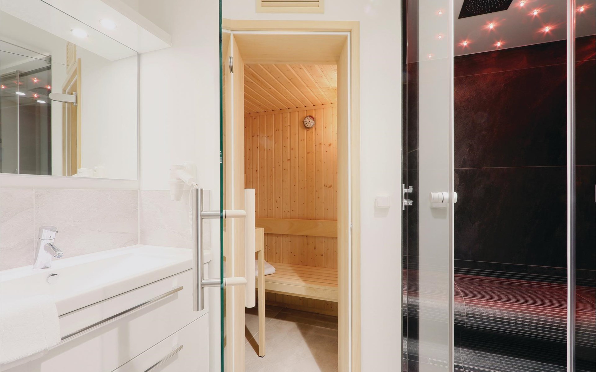 Het naburige a-ja resort heeft een prachtige wellnessruimte met sauna en zwembad. Dit kan tegen betaling gedeeld worden. Alle geregistreerde NOVASOL gasten uit het High End krijgen tijdens hun verblijf 25% korting op de betreffende entreeprijs. Houd er rekening mee dat het aanbod alleen kan worden gebruikt tijdens de officiële huurperiode, d.w.z. vanaf 16.00 uur op de dag van aankomst tot maximaal 10.00 uur op de dag van vertrek.
