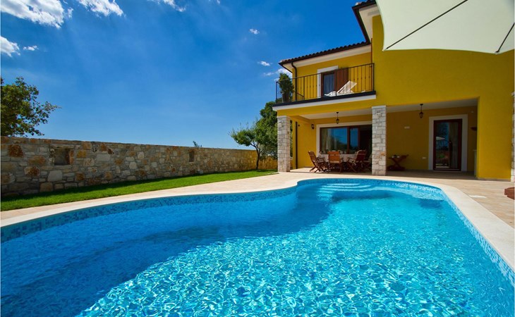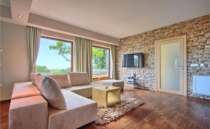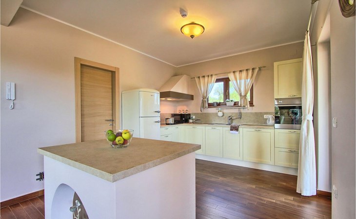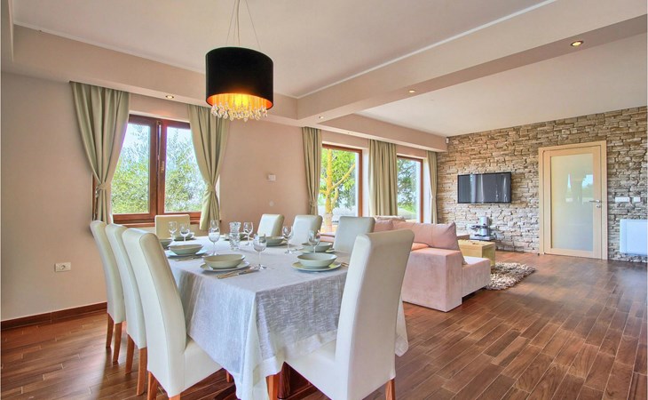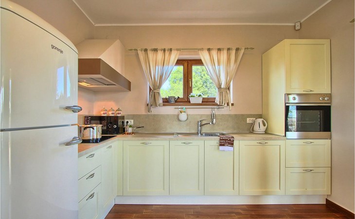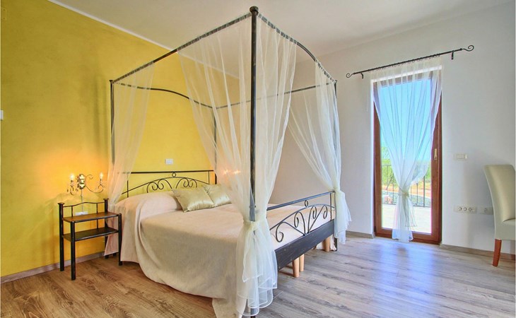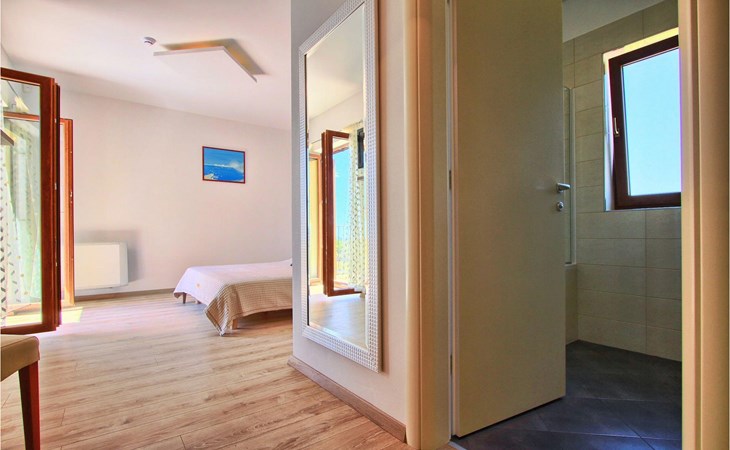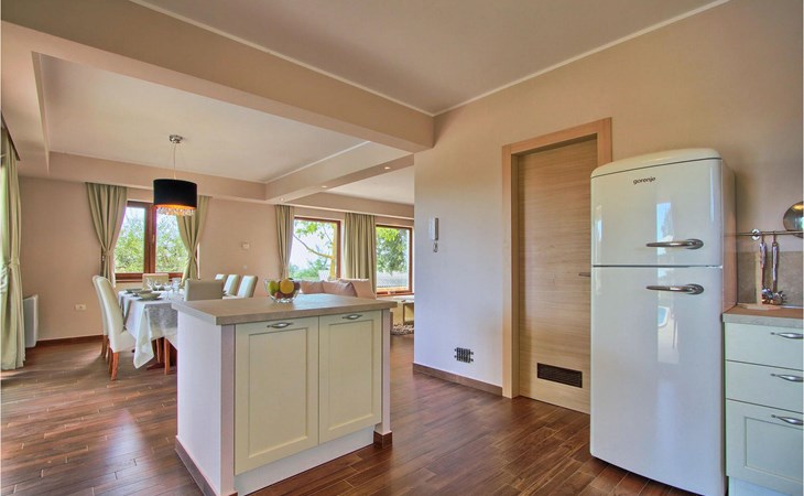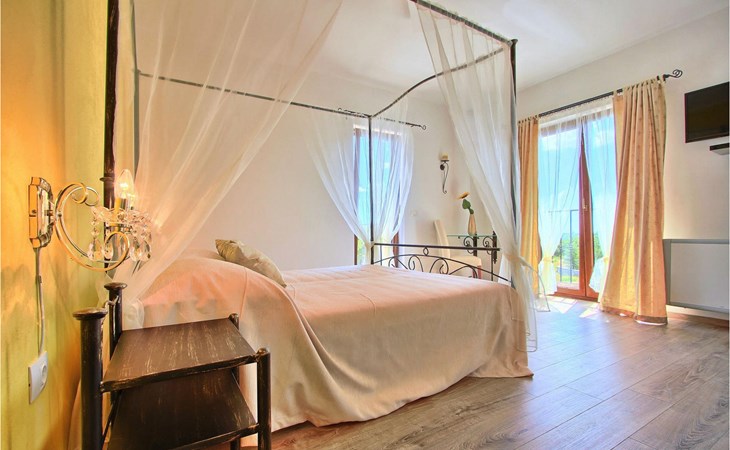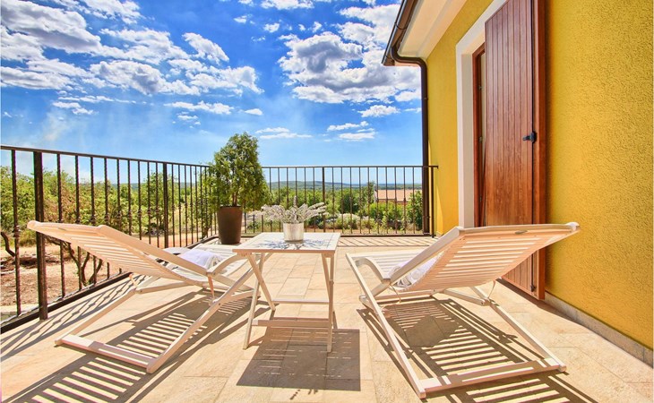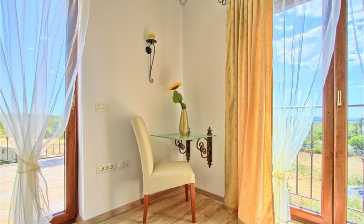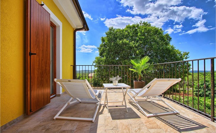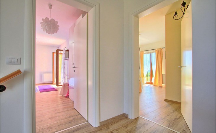 Op de eerste verdieping zijn er 4 prachtig ingerichte, ruime slaapkamers waar je zeker tot rust zult komen. Elke kamer heeft zijn eigen badkamer, met een muurkleur die perfect bij de slaapkamer past. De slaapkamers hebben ook een eigen uitgang naar het balkon, dat een prachtig uitzicht biedt op de Istrische omgeving.
