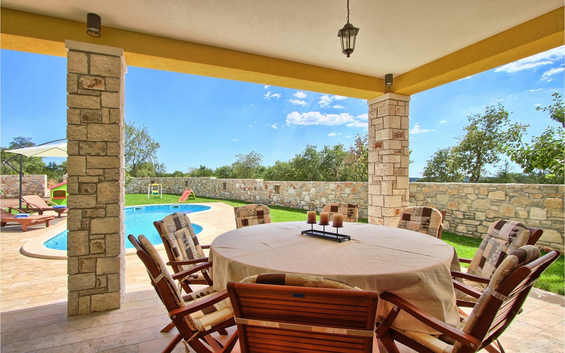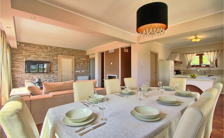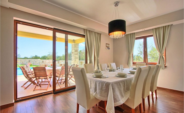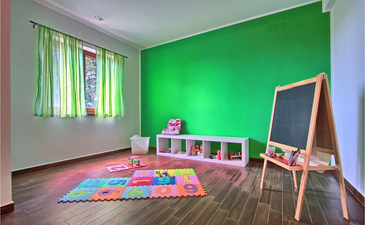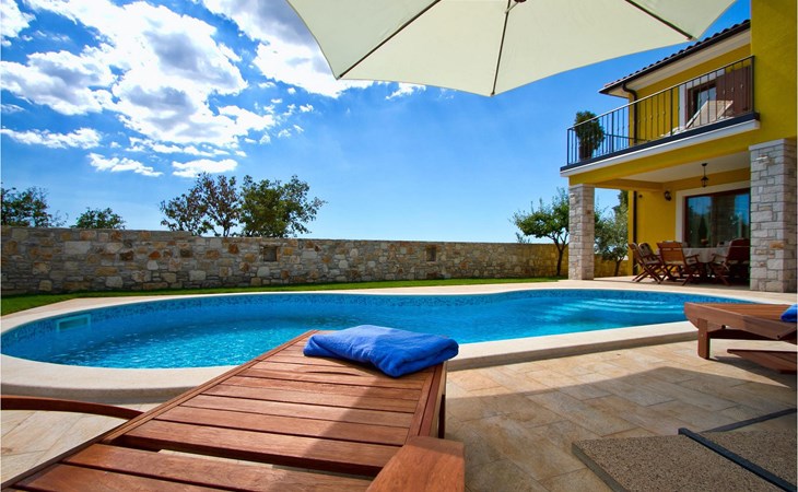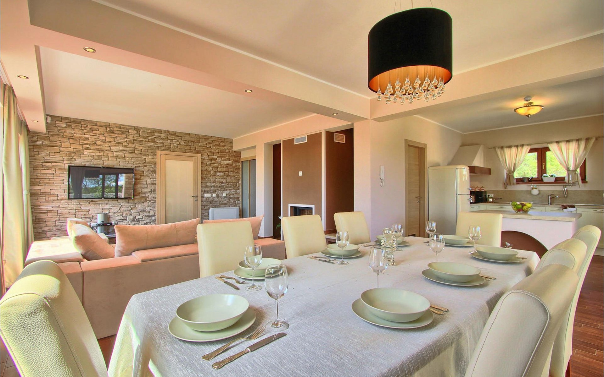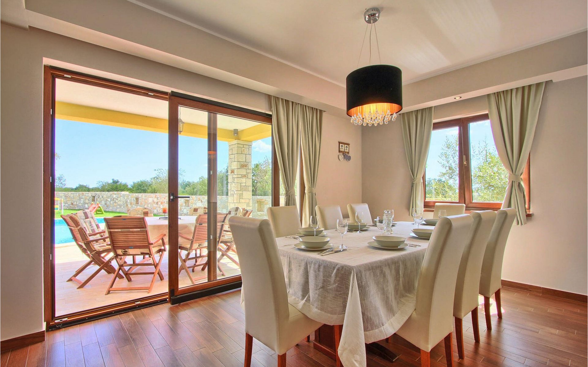 Op de eerste verdieping zijn er 4 prachtig ingerichte, ruime slaapkamers waar je zeker tot rust zult komen. Elke kamer heeft zijn eigen badkamer, met een muurkleur die perfect bij de slaapkamer past. De slaapkamers hebben ook een eigen uitgang naar het balkon, dat een prachtig uitzicht biedt op de Istrische omgeving.