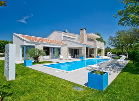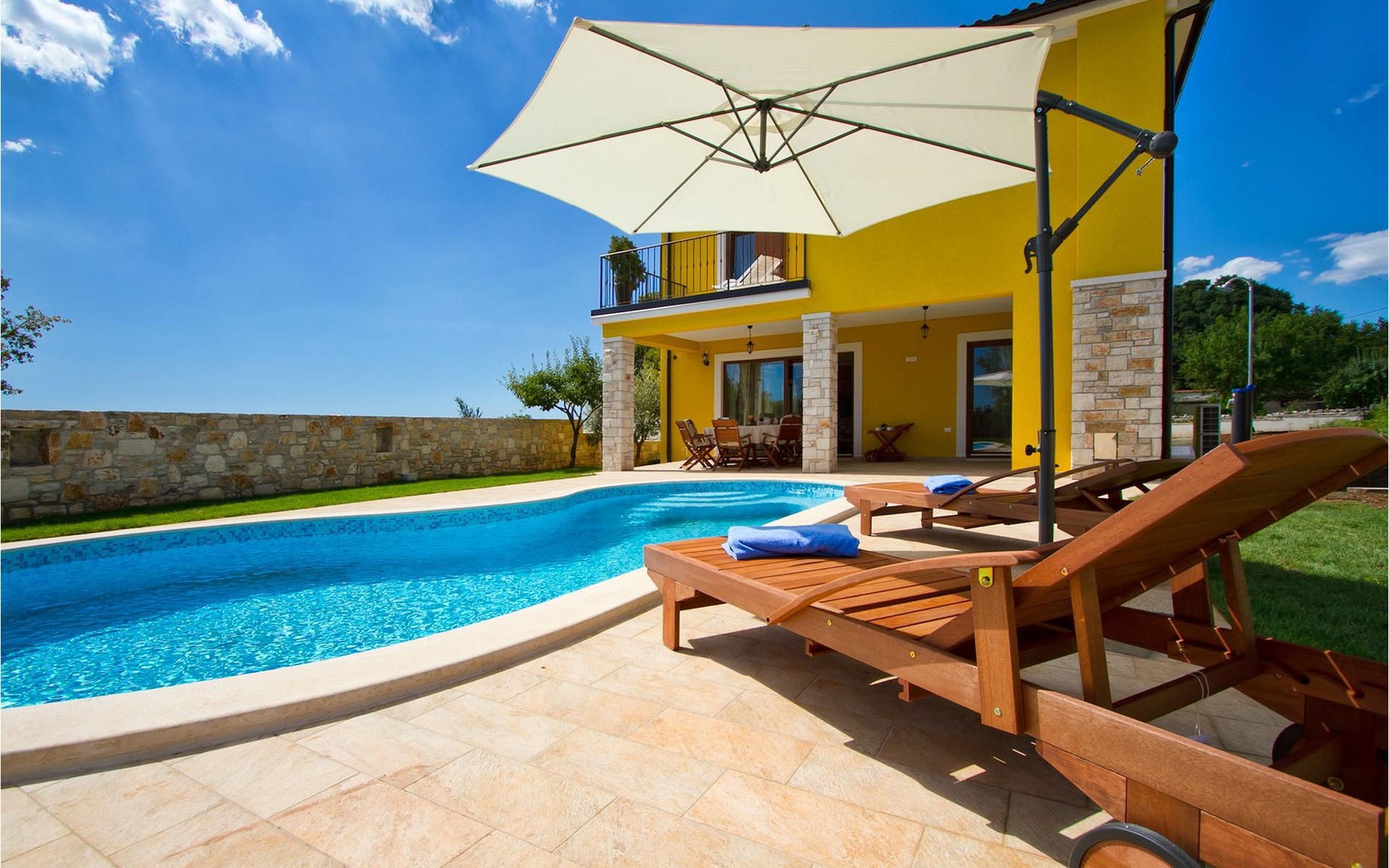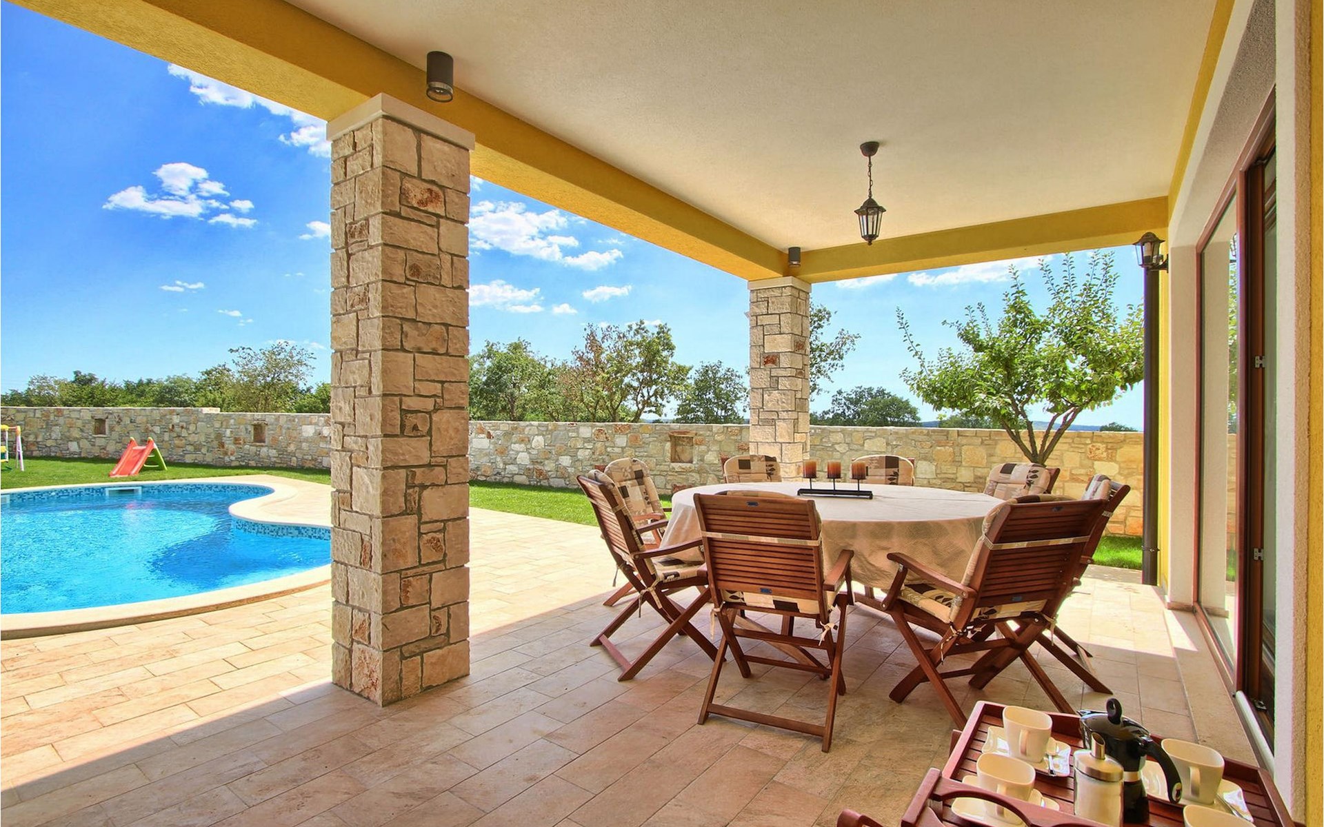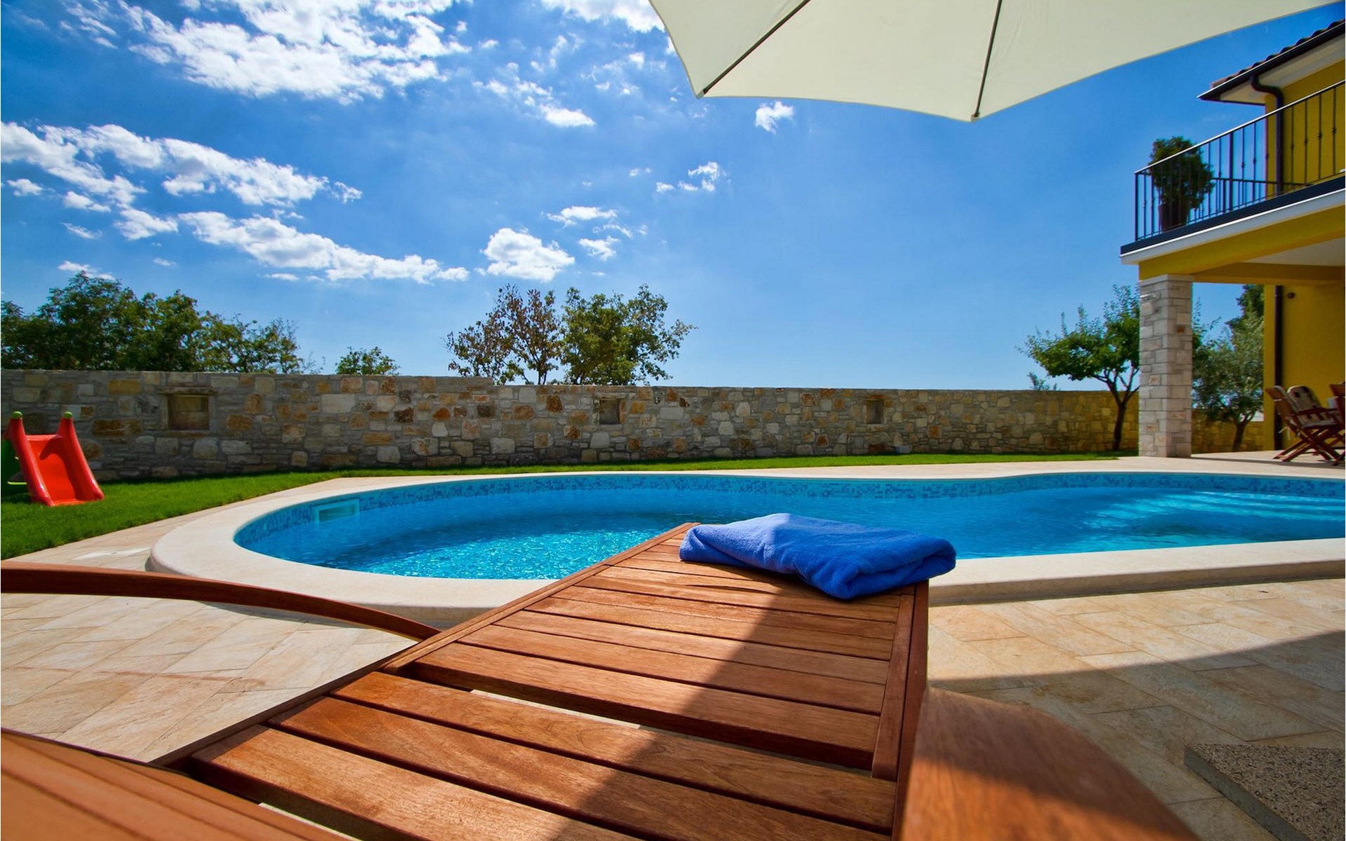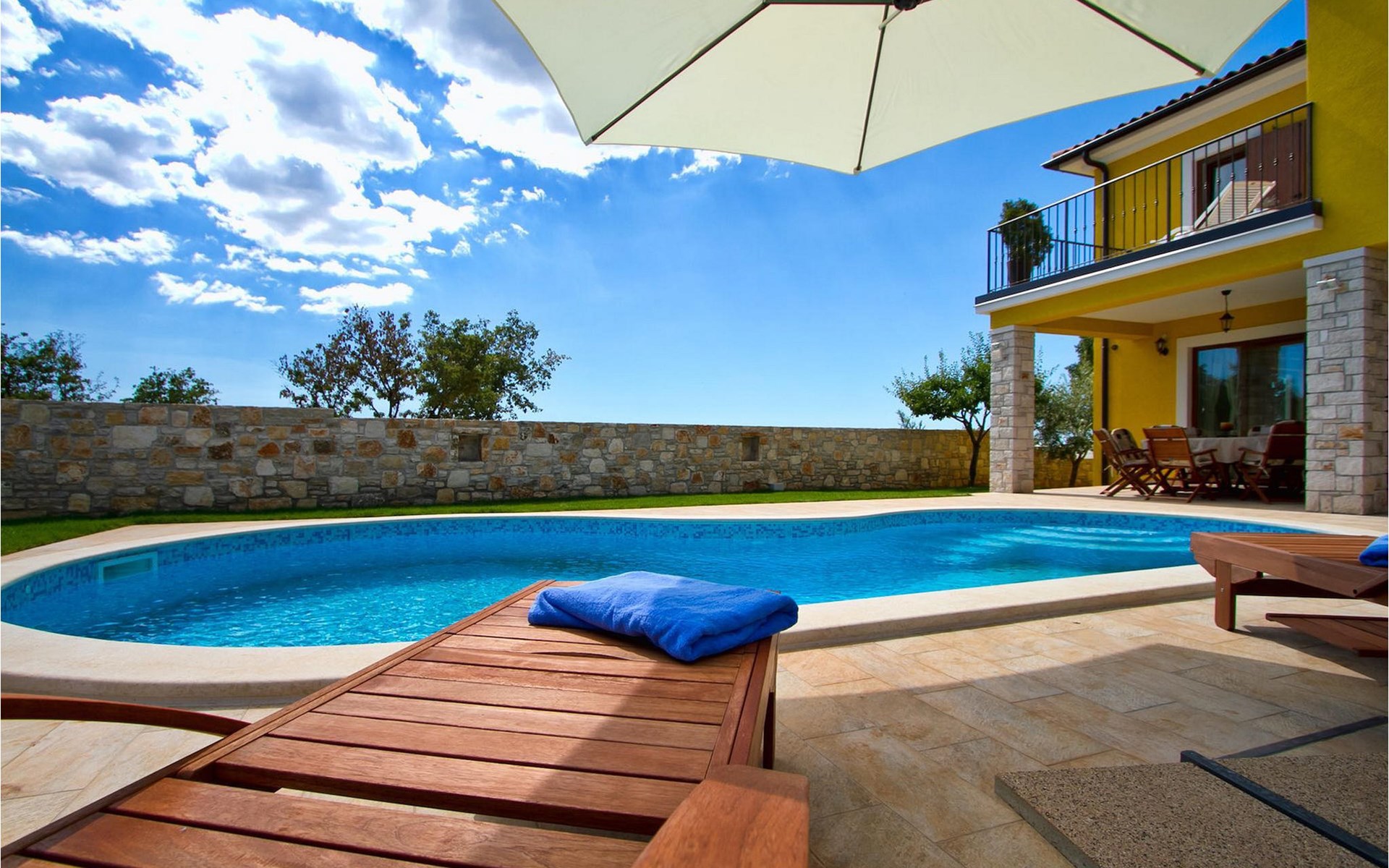 Op de eerste verdieping zijn er 4 prachtig ingerichte, ruime slaapkamers waar je zeker tot rust zult komen. Elke kamer heeft zijn eigen badkamer, met een muurkleur die perfect bij de slaapkamer past. De slaapkamers hebben ook een eigen uitgang naar het balkon, dat een prachtig uitzicht biedt op de Istrische omgeving.