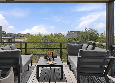 De ruime en sfeervol ingerichte woonkamer is voorzien van een comfortabele zithoek en een Smart TV met buitenlandpakket. Vanuit de woonkamer heeft u toegang tot het ruime terras op het noordoosten met luxe, comfortabele tuinmeubelen. Hier geniet u van een prachtig zijdelings uitzicht op de jachthaven en de uitgestrekte polders. De ruime luxe ingerichte keuken is voorzien van comfort inbouwapparatuur, o.a. een inductiekookplaat, een combimagnetron, een koelkast met vriesvak en een Nespressokoffiemachine. Tevens is er een aparte ruimte met een wasmachine, kinderstoel en kinderbed. In de inpandige berging is er ruimte voor uw (elektrische) fietsen.