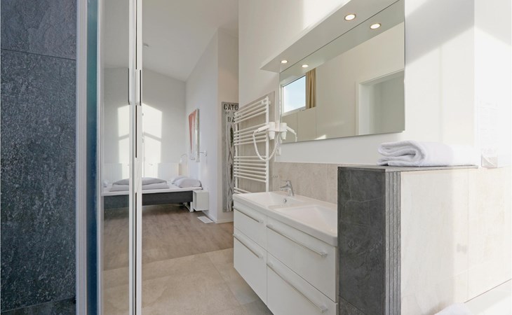 Breng je vakantie door in dit luxe penthouse appartement in het vakantiegebied BeachBay. Hier aan de Priwall in Travemünde liggen de duinvilla's verscholen in de natuur en doen hun naam eer aan. Het uitzicht op het helmgras en het duinlandschap is uniek. De exclusieve penthouses strekken zich uit over de 2e verdieping van de villa in strandhuisstijl.