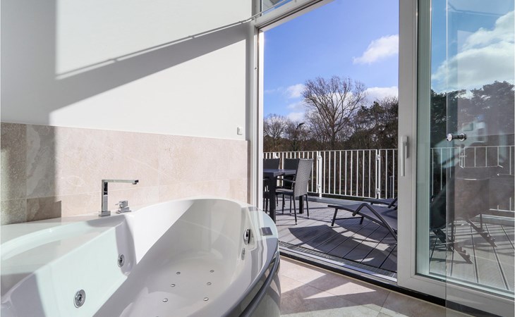 De kamers zijn ontworpen met veel hout en glas en in lichte kleuren, en het meubilair van hoge kwaliteit is perfect op elkaar afgestemd. De drie slaapkamers hebben elk een ruim tweepersoonsbed. Er is ook een slaapbank voor nog twee personen in het woongedeelte. Een van de slaapkamers leidt direct naar de badkamer. Hier kun je genieten van het unieke uitzicht vanuit de whirlpool of de dubbele regendouche. De privésauna in de tweede badkamer is de perfecte plek om te ontspannen. De bio-ethanol open haard baadt de woonkamer in een gezellig licht.