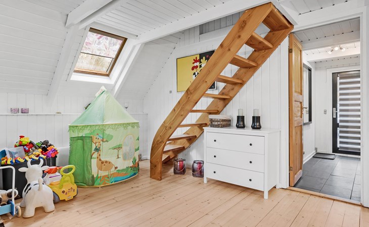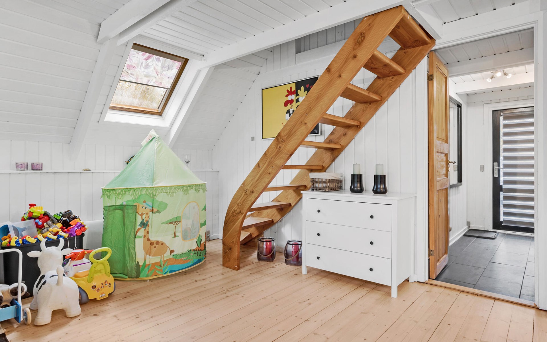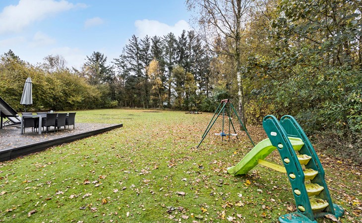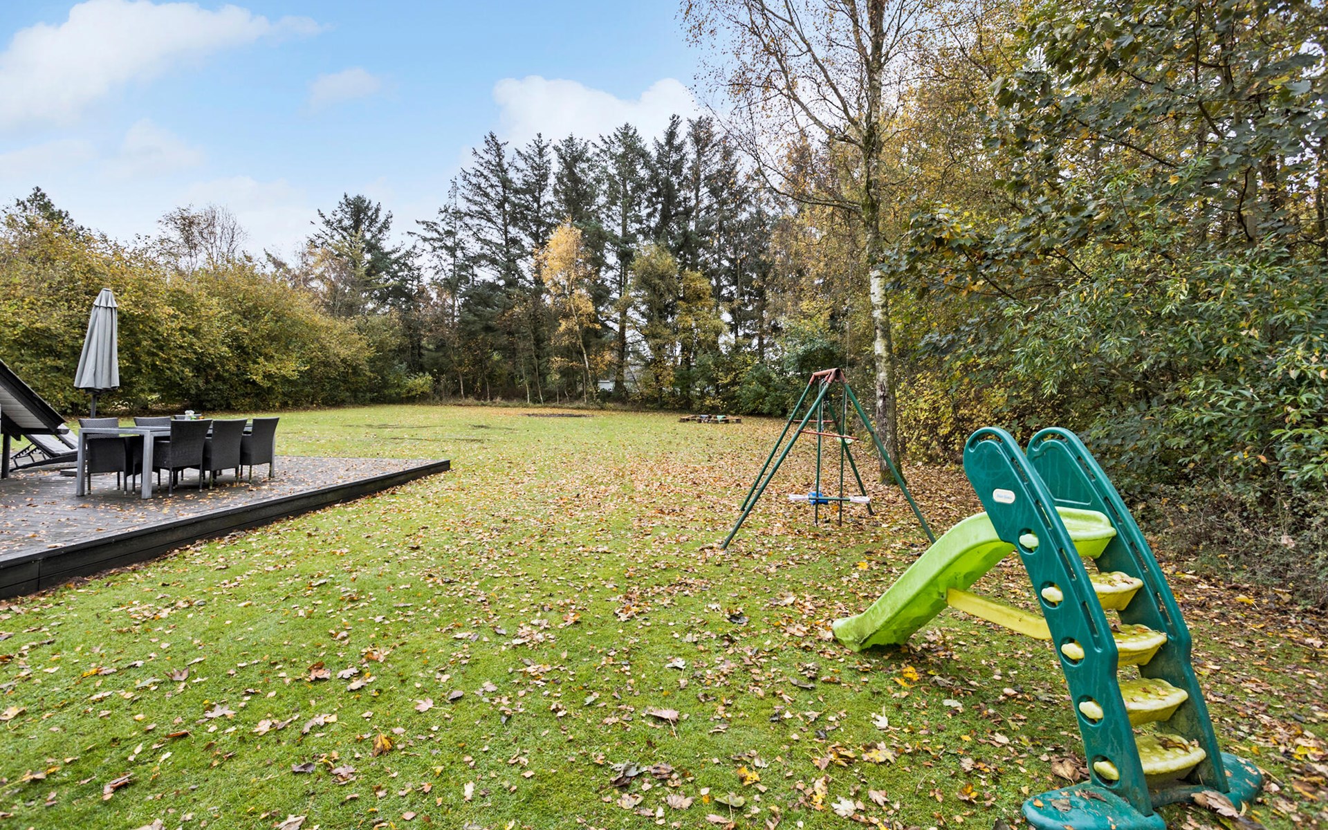 De ruime tuin biedt volop ruimte voor activiteiten zoals een potje voetbal met het gezin. Je kinderen kunnen zich ook vermaken op de trampoline en schommel. Maak de korte wandeling naar het fjord bij Kås Bredning en geniet van een verfrissende dag aan het water. Geniet 's avonds samen van een barbecue op het terras en sluit de dag gezellig af.