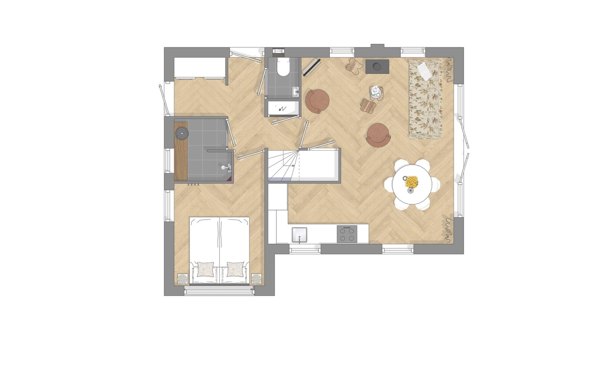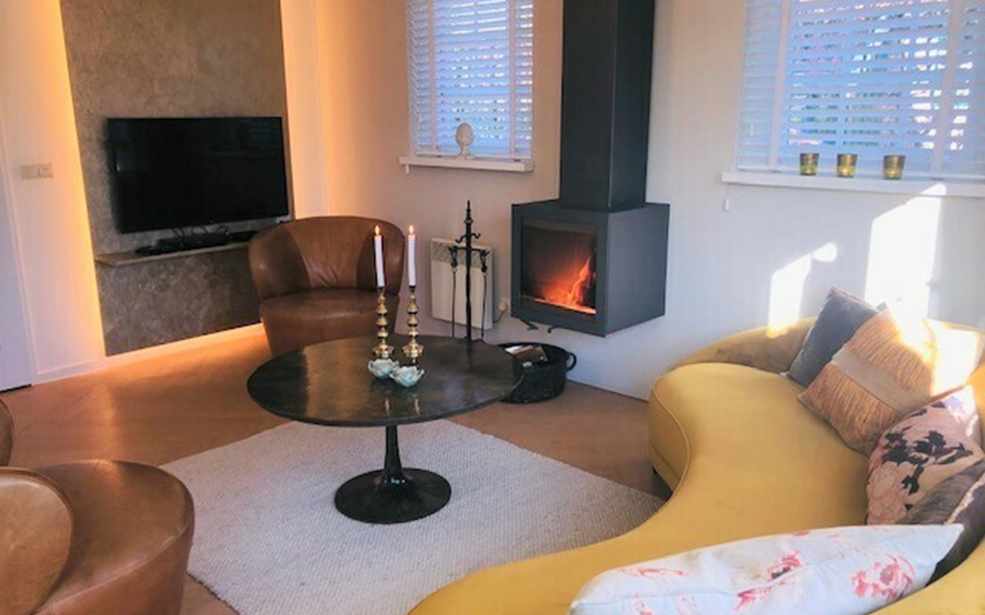 De woonkamer van de Notenboom is ingericht met een heerlijke ronde bank waar je gezellig met je gezelschap kunt plaatsnemen en kunt genieten van het knisperende vuur van de openhaard. De woning beschikt over een ovaalvormige tafel die je eetervaring net dat beetje extra geeft. Grenzend aan de woonkamer bevindt zich de keuken, voorzien van alle gemakken. Deze moderne keuken beschikt over een inductiekookplaat, vaatwasser, combi-oven, koelkast, vriezer, waterkoker en koffieapparaat (Nespresso). Een gezellige ronde eettafel maakt het mogelijk om samen te genieten van een maaltijd.