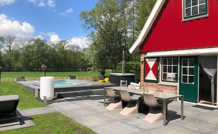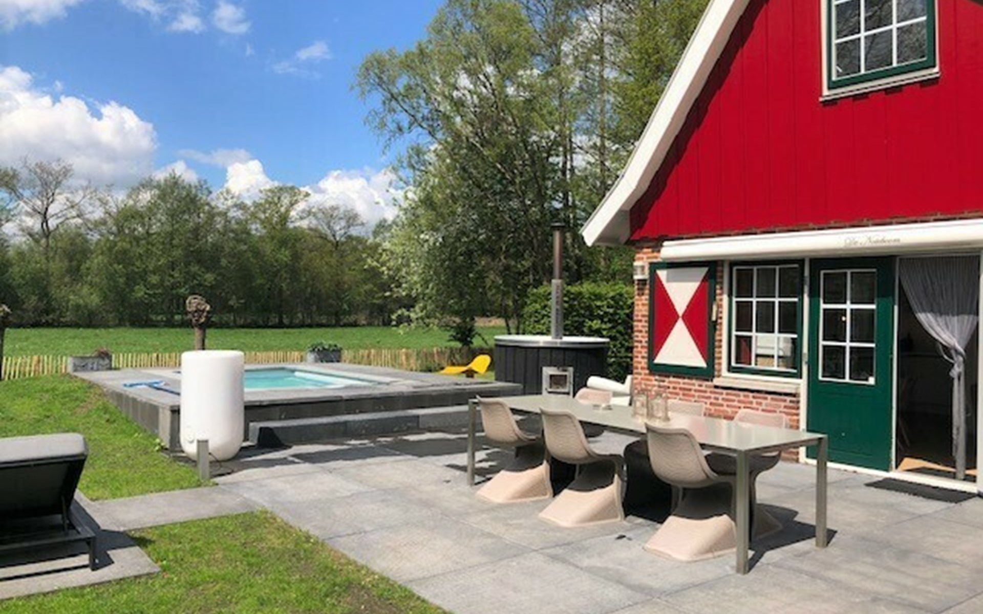 Onze meest luxe wellnesswoning beschikt over tal van faciliteiten. Naast de woning vind je je eigen houtgestookte hottub en het prachtige verwarmde privézwembad met jetstream (geopend van Pasen tot eind september). De woning beschikt ook over een Finse sauna met een groot raam dat uitzicht biedt op de bosrijke omgeving. In de ruime tuin vind je een heerlijke buitendouche, en in de badkamer van de woning kun je tijdens het douchen genieten van de sunshower om je huid bij te kleuren.