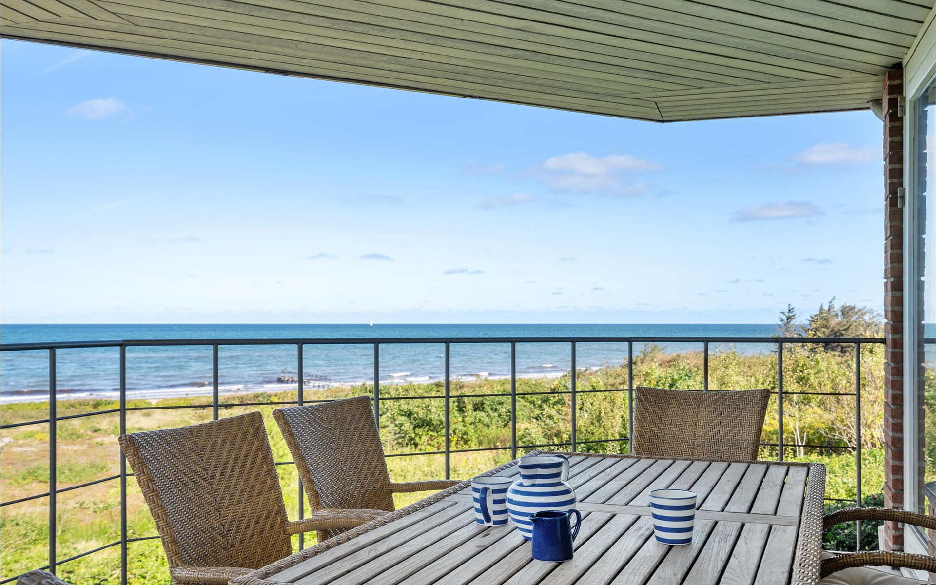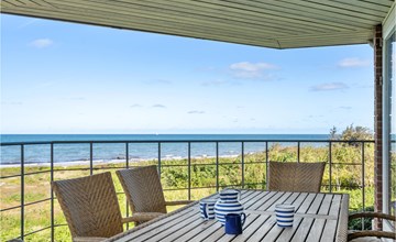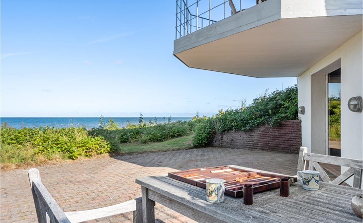 Deze droom van een vakantiehuis, gelegen op de eerste rij aan een van de goede stranden van Noord-Zeeland, bestaat uit twee verdiepingen.