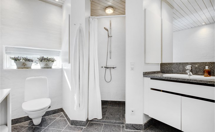 In de woonkamer is een schuine trap naar de benedenverdieping. Hier vindt u een mooie woonkamer waar u met de familie kunt biljarten. Er zijn twee goede badkamers, waarvan één met spa en sauna. Vanuit de sauna op de begane grond loopt u direct de zee in. Rondom het vakantiehuis zijn er diverse mogelijkheden om te zitten en te genieten van de zon of beschutting te vinden tegen de wind.