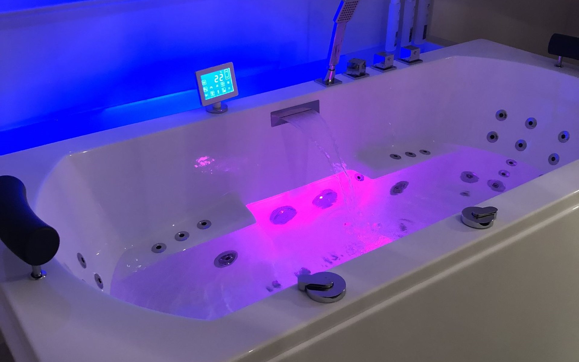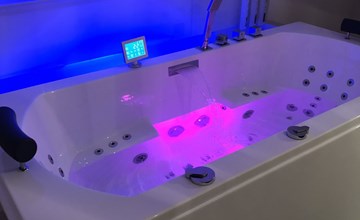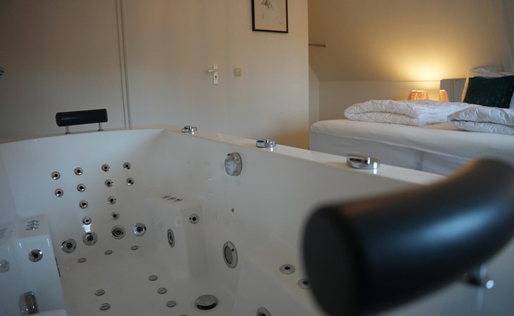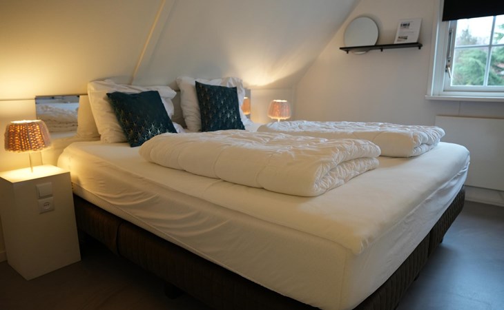 Op de bovenverdieping vind je een luxe tweepersoonsjacuzzi in de master bedroom. Het bad behoudt, net als de buitenjacuzzi, de ingestelde watertemperatuur, zodat je zo lang kunt genieten als je wilt. Daarnaast vind je in de master bedroom een heerlijk tweepersoonsbed waar je goed tot rust kunt komen. In de 2 slaapkamer bevindt zich nog een 2e boxspring, maat 160*200.