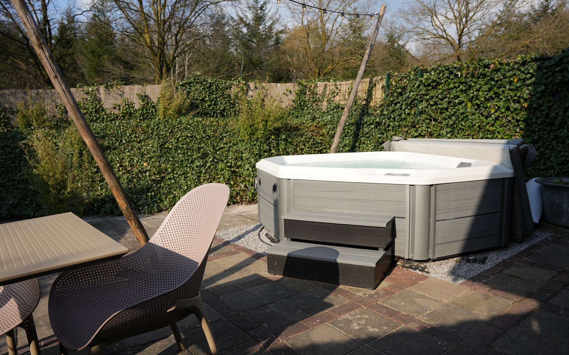De tuin van De Elysium is volledig privé en afgeschermd. Aan de voorkant van de woning heb je een afgeschermde zitplaats waar je in de zomer heerlijk kunt eten. Aan de achterkant van de woning vind je een stadstuin met daarin de jacuzzi. Het is de perfecte tuin om heerlijk in alle rust bij te komen van de dagelijkse sleur