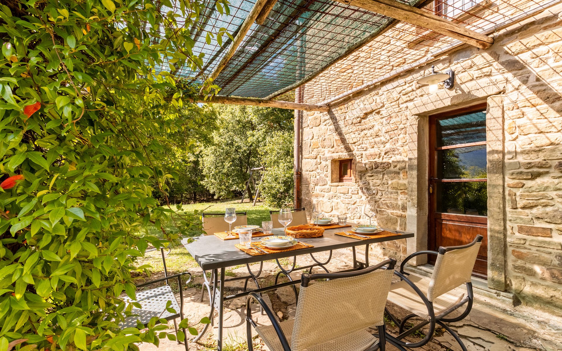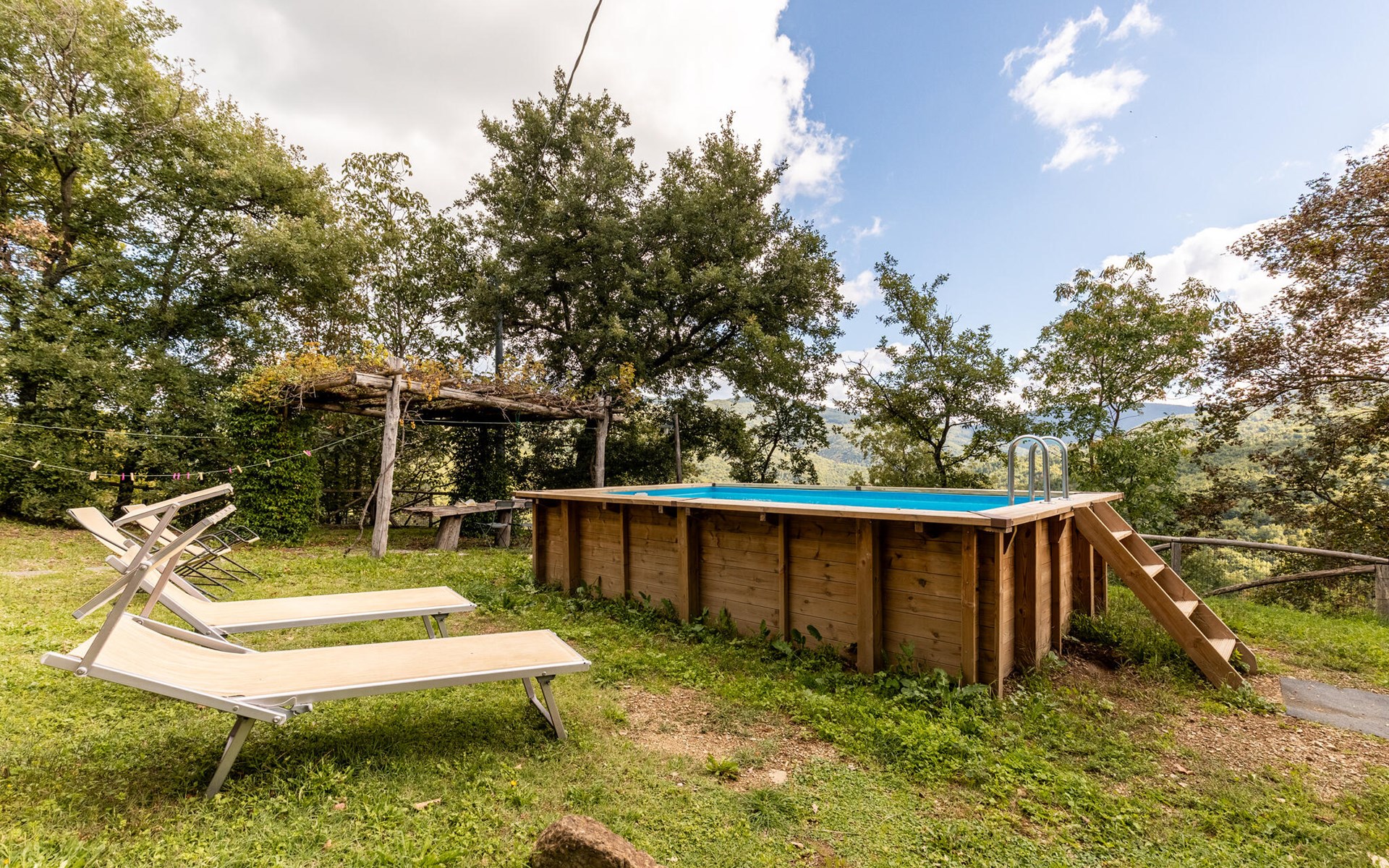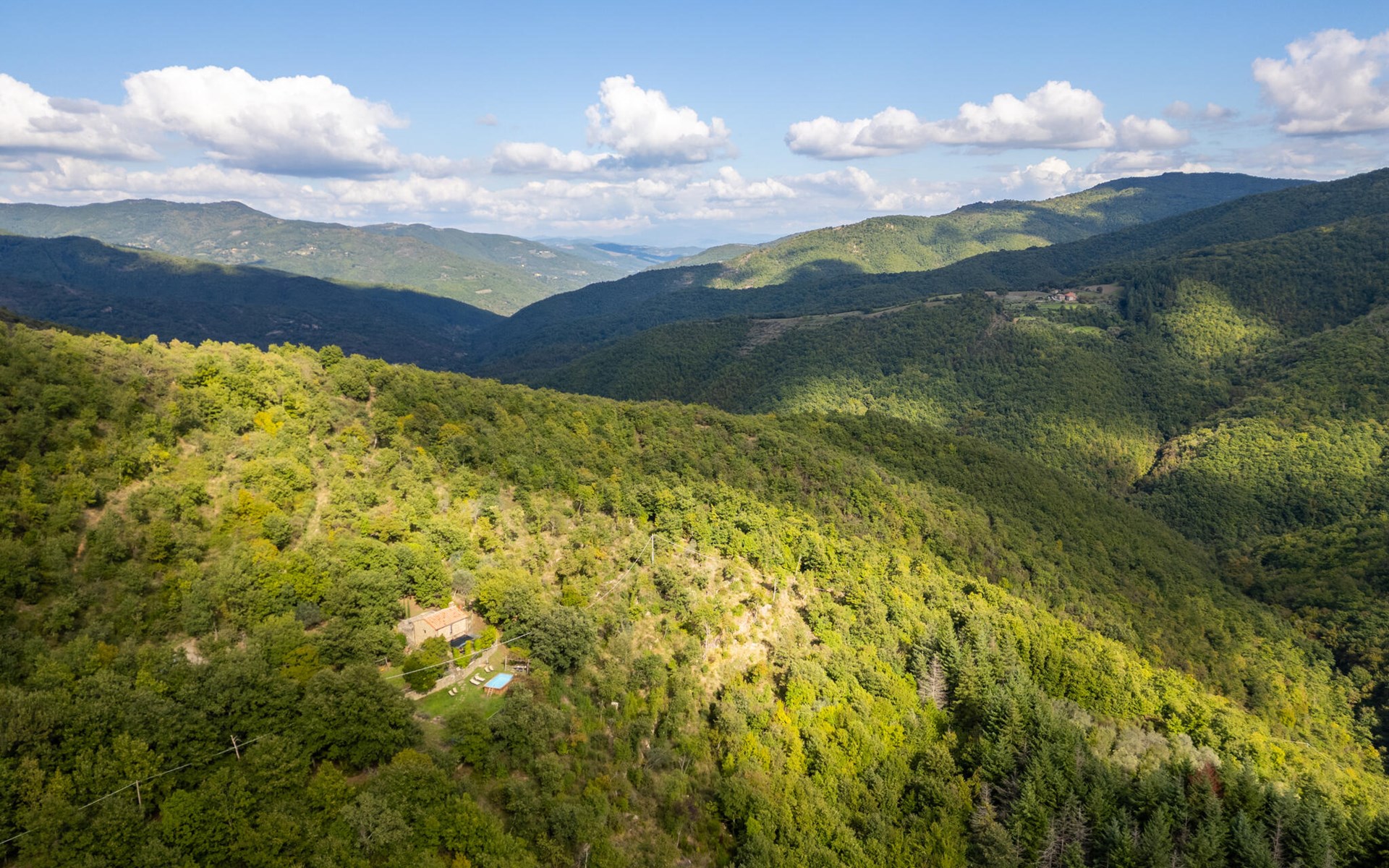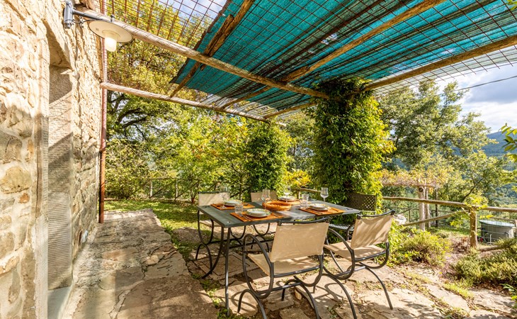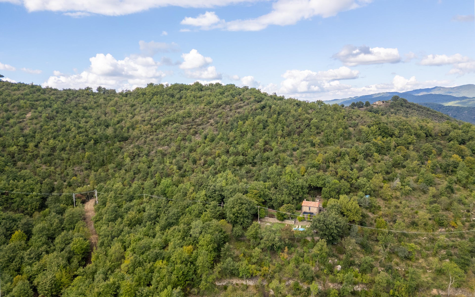 Rustig gelegen natuurstenen huis op een heuvel, omgeven door uitgestrekte bossen. Rustieke inrichting. Voor de keuken met open haard is een romantische zithoek met barbecue en pizza-oven. Iets lager op het terrein nodigt het zwembad uit tot verfrissing. Rondom zijn bossen - hier bent u echt helemaal alleen: ideaal om te ontspannen, te wandelen en te snuffelen. Van hieruit kunt u het Trasimenomeer met zijn zandstranden bezoeken (35 km), Arezzo (30 km), Montepulciano (45 km), Città di Castello (35 km), Castiglion Fiorentino met allerlei winkels, restaurants en een kleurrijke weekmarkt 18 km, Cortona 25 km. De toegangsweg (4,3 km) is niet geasfalteerd, deels hobbelig, steil, bochtig en daarom alleen geschikt voor 4x4 voertuigen. Airconditioning in de slaapkamers.