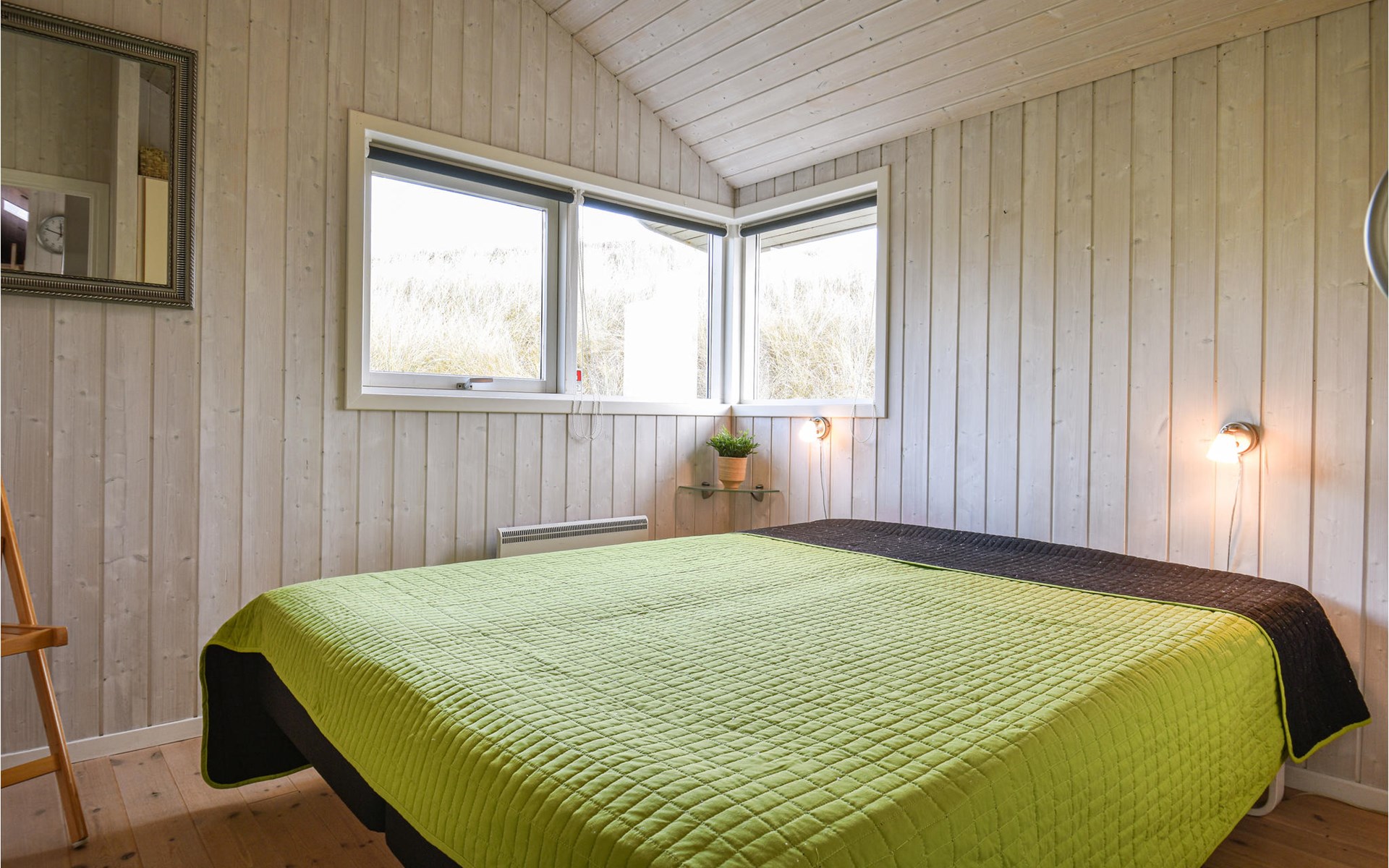 Een prachtig vakantiehuis met genoeg ruimte voor iedereen. Het huis is goed ingericht met lichte muren en grote ramen waar het licht naar binnen stroomt. In de gecombineerde woon/keukenkamer kan iedereen samen zijn, hoewel sommigen koken terwijl anderen tv kijken of Wii spelen. De drie goede slaapkamers hebben goede bedden en de kinderen zullen zich vermaken op de hangzolder. In de grote badkamer kun je heerlijk ontspannen in de whirlpool. Er is ook een gastentoilet in het huis. Het heerlijke terras biedt een prachtig uitzicht over de duinen en de kinderen kunnen schommelen of spelen in de zandbak. Het huis ligt op loopafstand van het strand. Ongeacht het seizoen is het een belevenis om aan zee te wandelen. Na een dag in de frisse zeelucht, wanneer een natuurlijke vermoeidheid intreedt en de wind uw wangen rood heeft gekleurd, kunt u het zich gemakkelijk maken op het heerlijke terras, rond de open haard of in het bubbelbad. Vlakbij het vakantiehuis ligt de badplaats Søndervig, die in de zomer zeer levendig is en waar u activiteiten voor alle leeftijden kunt verwachten. Hier kunt u naar hartenlust winkelen in de vele winkels, minigolf spelen of fietsen huren, want er zijn veel fiets- en wandelroutes in de omgeving. De goede omstandigheden trekken veel surfers naar Ringkøbing Fjord, maar ook veel natuurliefhebbers.