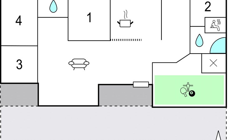 Groot en goed ingericht vakantiehuis op een groot perceel in het zuidelijke deel van Bratten. Vanuit de woonkamer met een lichtgekleurde houten vloer en mooie meubels, leiden een paar treden naar het eetgedeelte met een lichtgekleurde tegelvloer. De grote activiteitenruimte met tafeltennis en tafelvoetbal biedt uren speelplezier voor jong en oud. Met twee mooie badkamers en vier slaapkamers is het huis ideaal voor twee of drie gezinnen. Het gedeeltelijk overdekte terras op het zuiden is ideaal voor barbecues.