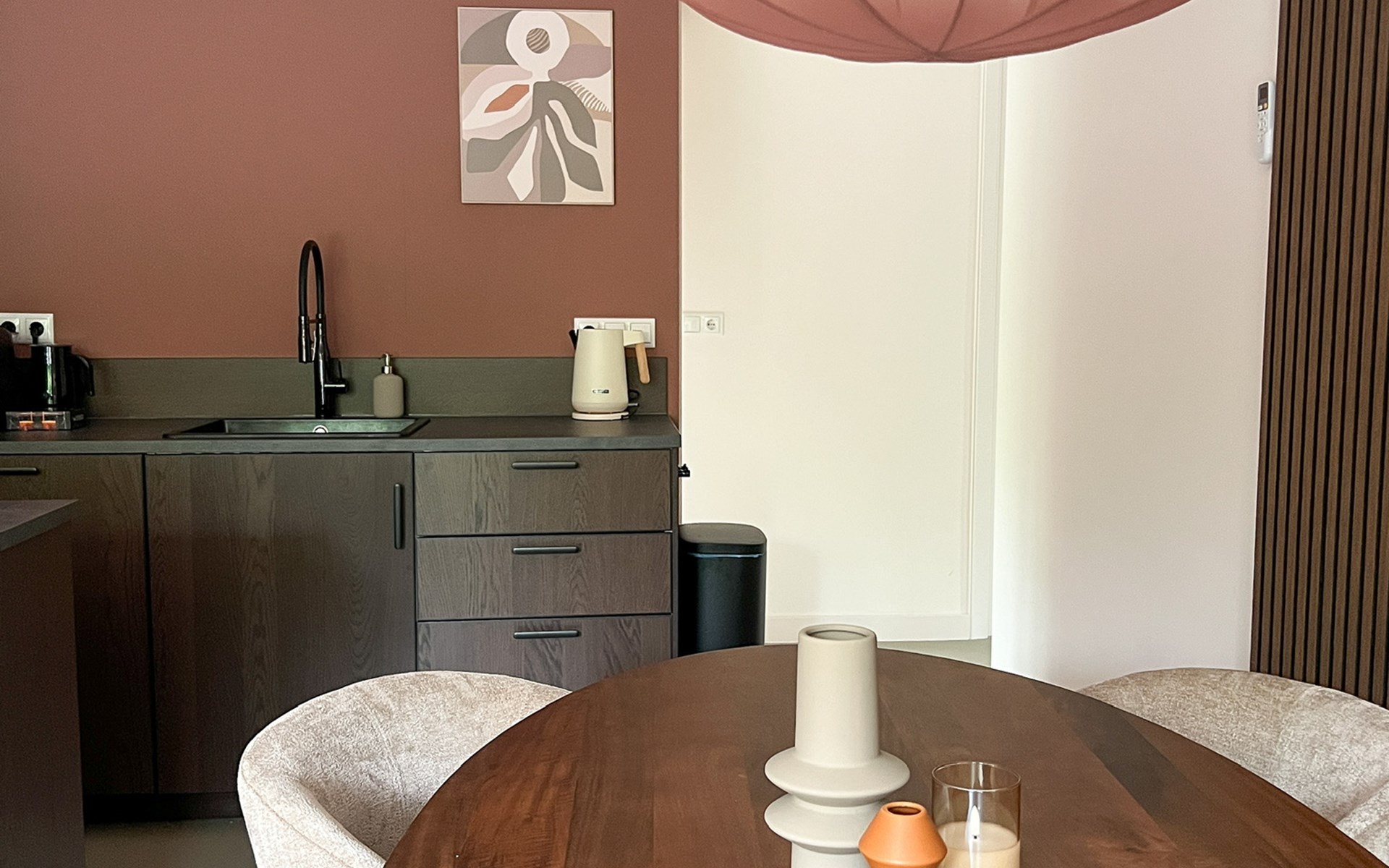 De keuken is nieuw en volledig uitgerust met o.a. een vaatwasser, combi-oven, kookeiland met inductiekookplaat, nespresso koffiemachine met losse melk opschuimer. Eigenlijk alles wat je nodig hebt om in alle comfort te koken. Daarnaast staan er twee barkrukken aan het kookeiland om het koken een heerlijke sociale bezigheid te maken.