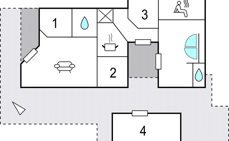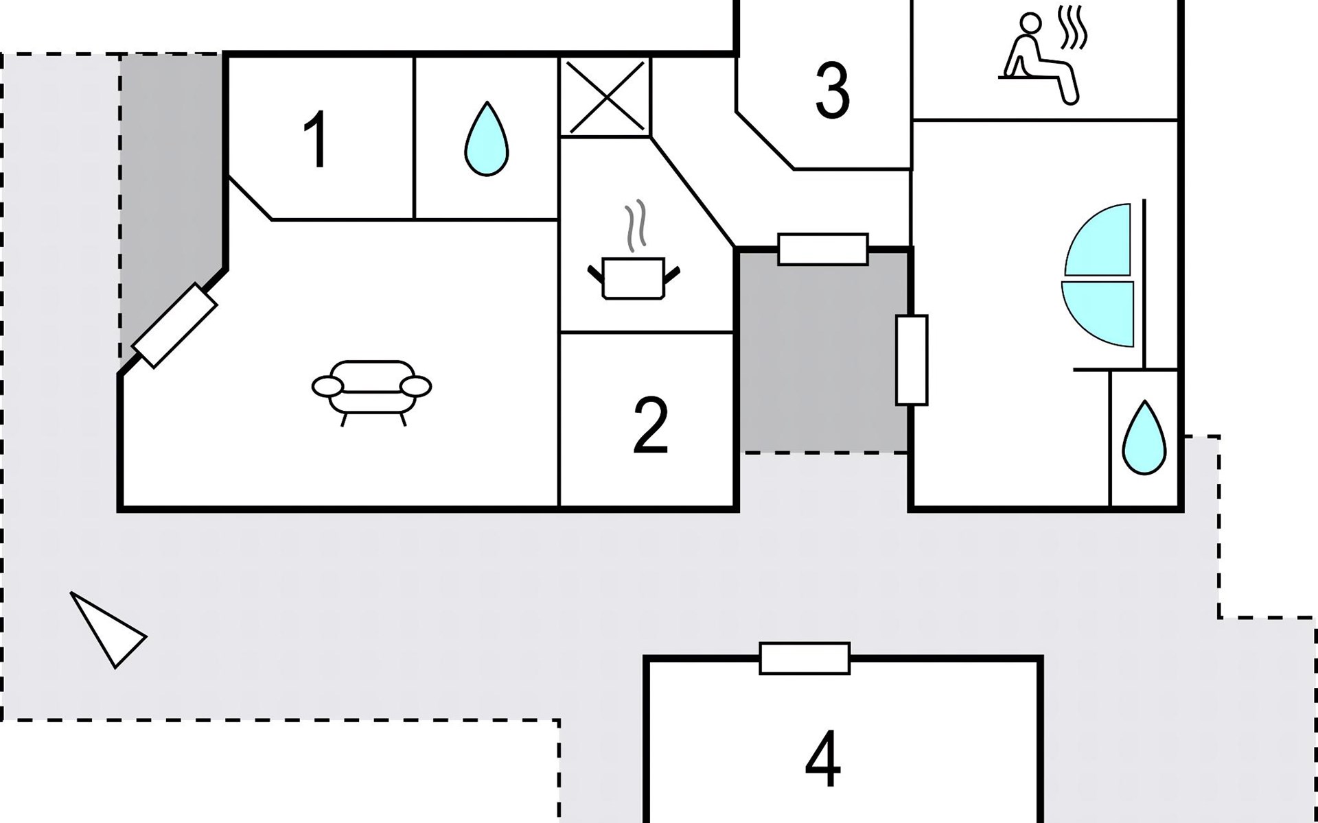 Im Haus selbst befinden sich 3 Schlafzimmer - alle mit guten Betten, sodass Sie garantiert gut schlafen und bereit für die Erlebnisse des nächsten Tages sind. Es gibt Zugang über die Terrasse zum schönen Nebengebäude, wo es weitere Betten und Platz gibt. Darüber hinaus gibt es 2 Badezimmer - eines ist mit einem schönen Wellnessbereich mit 2 Spas für zwei Personen und einer schönen Sauna mit einem Sternenhimmel - hier können Sie sich entspannen und verwöhnen lassen. Das Haus hat eine große Terrasse, von der ein Teil überdacht ist.