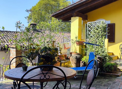 Schönes Ferienhaus mit zwei Terrassen und Gemeinschaftspool.