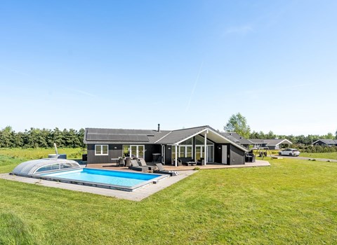 Schönes, gemütliches Ferienhaus, zentral in Blåvand gelegen. Mit seinem Reetdach passt es gut in die Natur. Das Haus enthält einen großen Poolraum, der stundenlangen Spass garantiert. Vom großen Whirlpool haben Sie einen guten Blick auf den Raum. In der großen Wohnküche kann sich die ganze Familie versammeln, im 1. Stock gibt es ein Wohnzimmer. Zum Haus gehört auch ein großzügiges und unter Naturschutz stehendes Grundstück, das zur Entfaltung im Freien einlädt. Die Nordsee mit ihren rauen Wellen verlangt auch gesehen zu werden, zu jeder Jahreszeit. In Blåvand finden Sie alles für den täglichen Gebrauch, auch Kunsthandwerker. Der Strom in diesem Haus wird von Windmühlen produziert.
