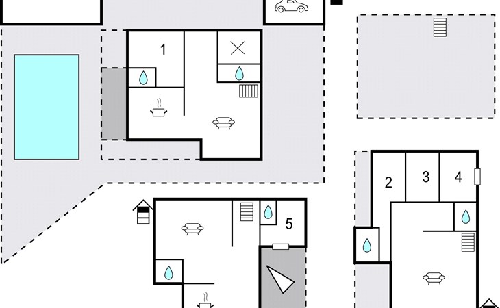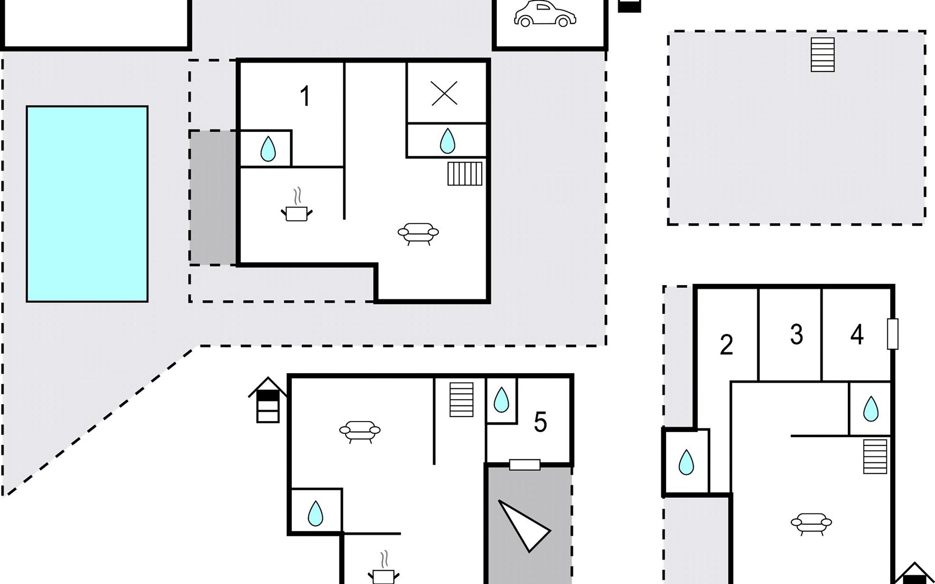 Das Anwesen ist über den Flur zugänglich, bis Sie das Wohnzimmer mit Fernseher und Kamin, eine offene Küche / Esszimmer, eine Gästetoilette und eines der 5 Doppelzimmer erreichen. Dieses Schlafzimmer ist mit einem Doppelbett, Zugang zur Terrasse und einem eigenen Bad ausgestattet. Im Erdgeschoss befindet sich ein Schlafzimmer mit zwei Einzelbetten und eigenes Bad mit Dusche, sowie direkter Zugang zur Hauptterrasse und zum Poolbereich. Ein geräumiges Wohnzimmer / Spielbereich mit Tischtennisplatte, Billardtisch, TV und Spielekonsole. Das Erdgeschoss hat auch einen Küchenbereich und ein Badezimmer mit 3 Duschen. Von hier aus haben Sie direkten Zugang zur überdachten Terrasse, den offenen Terrassen und dem Poolbereich.