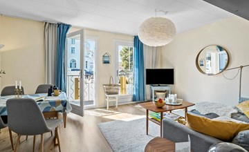 Freuen Sie sich auf diese moderne und heimelige Ferienwohnung, die das Leben im Inneren und im Freien gekonnt miteinander verbindet. Genießen Sie schon beim Betreten die Atmosphäre und den Charme der Wohnung in maritimen und weichen Farben. Fühlen Sie sich mit Ihren Lieben wie zuhause und genießen die ansprechende Ausstattung. Der Ferienalltag wird wie im Fluge vergehen und lädt Sie ein die Sonne auf der Terrasse der Wohnung zu erleben. Beginnen Sie Ihren Morgen, mit Kaffee und Frühstück in der Sonne vor der Wohnungstür und schmieden Pläne für den bevorstehenden Tag. Den Meerblick können Sie von der Gemeinschaftsterrasse des Hauses genießen und mit anderen Gästen ins Gespräch kommen.