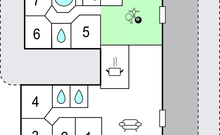 Phantastisches Qualitätshaus aus Holz in Lohals. Es ist hell und schön eingerichtet und beherbergt eine moderne Ausstattung. 6 Schlafgelegenheiten sind auf Schlafböden zu finden. Im Haus gibt es eine große Wohnküche, sie liegt mitten im Haus und dient als Bereich für ein gemütliches Beieinander zum Kochen und Entspannen vor dem behaglichen Feuer des Kaminofens. Nebenan ist gleich der Aktivitätsraum. Eines der 4 Bäder des Hauses hat einen Whirlpool und Zugang zu einer Sauna für 3 bis 4 Personen. Auf der 150 m² großen Terrasse, davon sind 50 m² überdacht, können Sie herrlich sitzen und Ihre Ferien genießen. An lauen Abenden können Sie hier auch gut grillen. Im charmanten Lohals können Sie schön im Hafen und entlang der Marina spazieren.