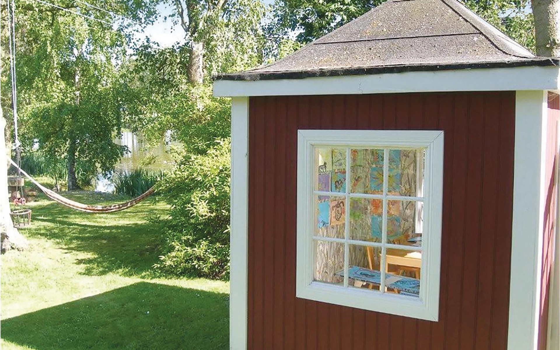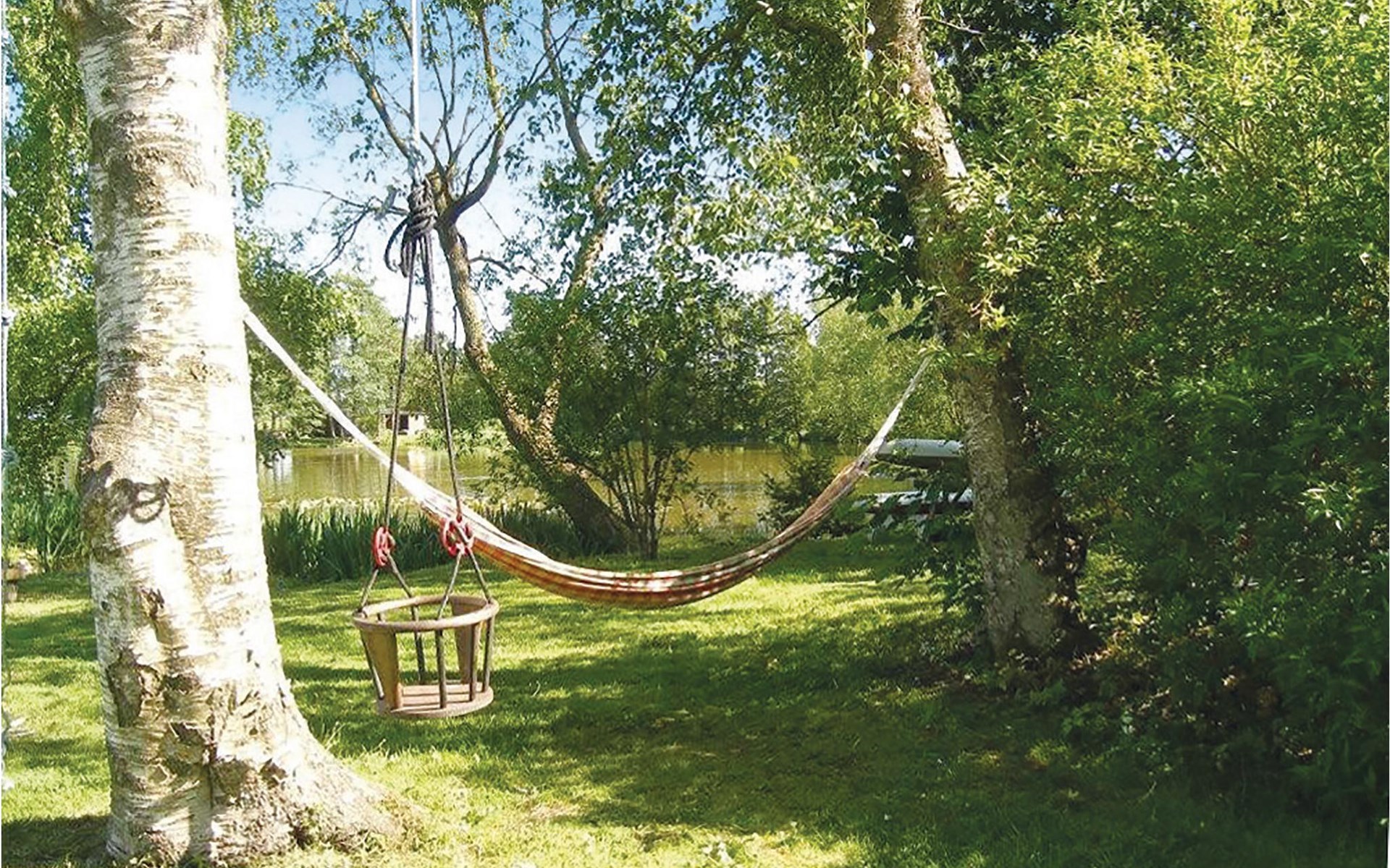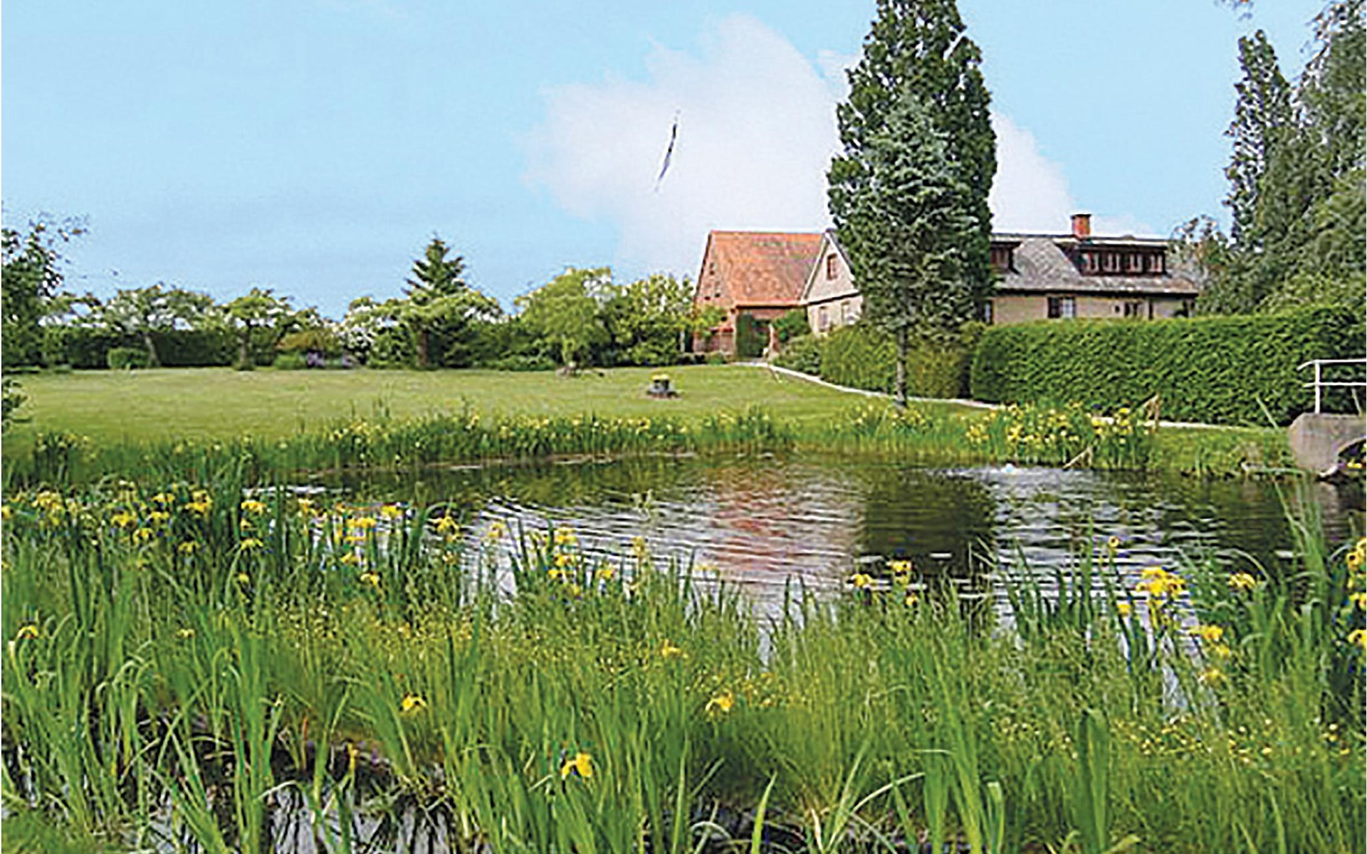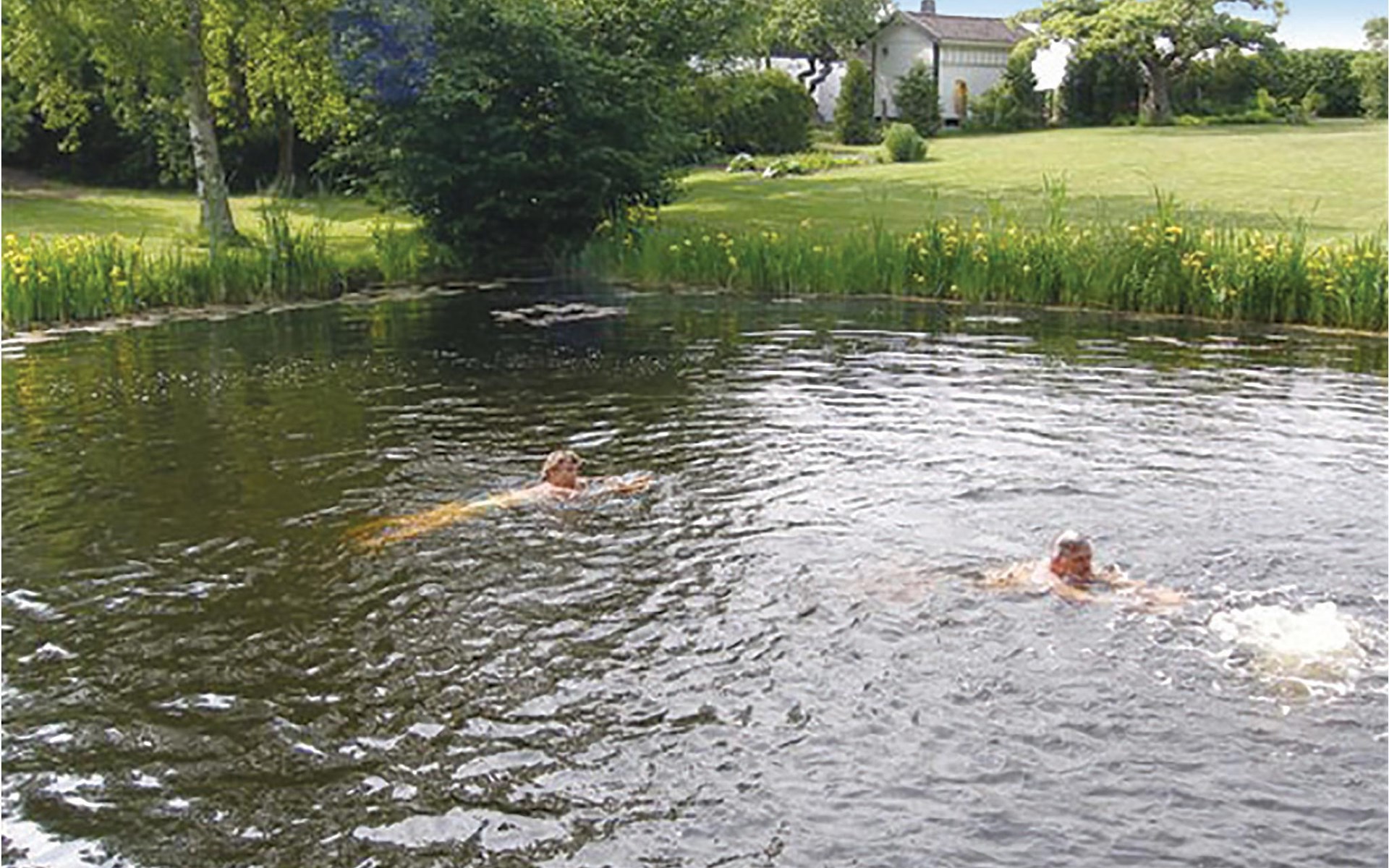 Das Haus ist von einem großen Park mit einem See und einem biologisch gereinigten Badeteich umgeben. Im Park gibt es eine mit Holz beheizte Sauna. Kanus stehen Ihnen zur Verfügung. Spielhaus, Schaukeln und Trampolin sind ebenfalls vorhanden. Hier finden Sie kilometerlange Waldwege für schöne Spaziergänge und zum Joggen. Auch viel Wild, darunter Rehe und Hirsche gibt es.
