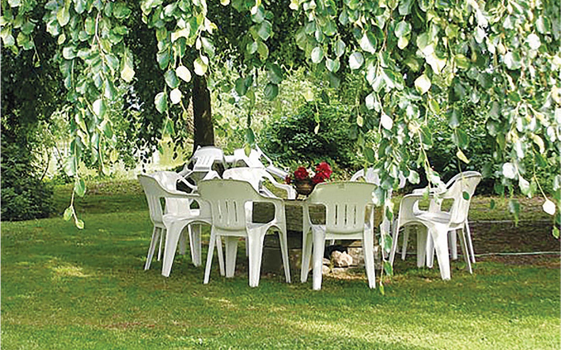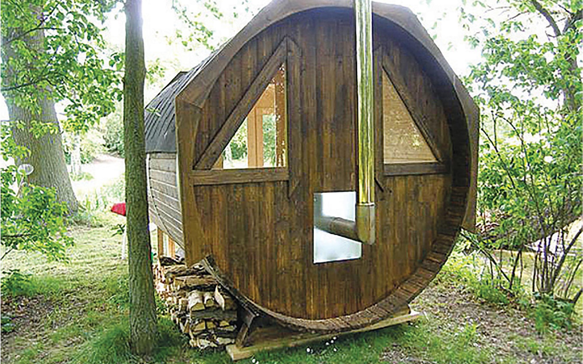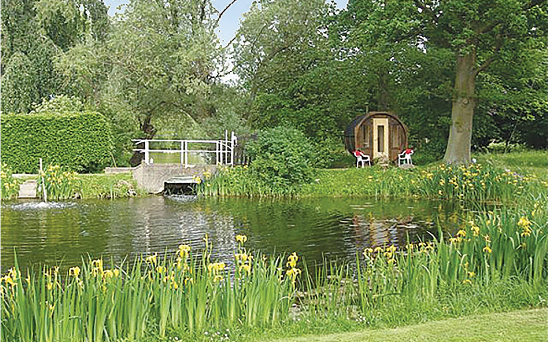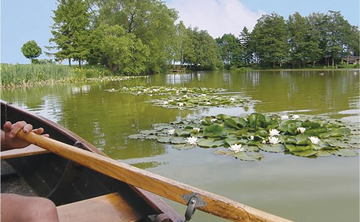 Das Haus ist von einem großen Park mit einem See und einem biologisch gereinigten Badeteich umgeben. Im Park gibt es eine mit Holz beheizte Sauna. Kanus stehen Ihnen zur Verfügung. Spielhaus, Schaukeln und Trampolin sind ebenfalls vorhanden. Hier finden Sie kilometerlange Waldwege für schöne Spaziergänge und zum Joggen. Auch viel Wild, darunter Rehe und Hirsche gibt es.