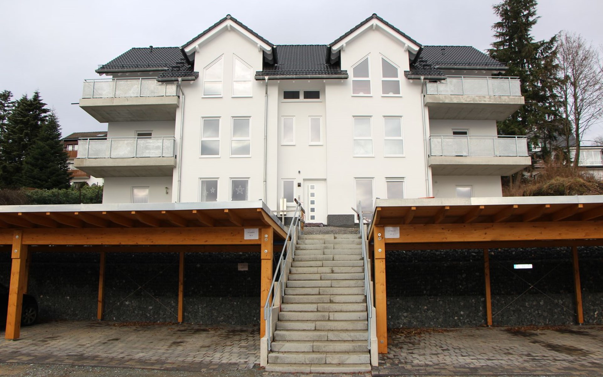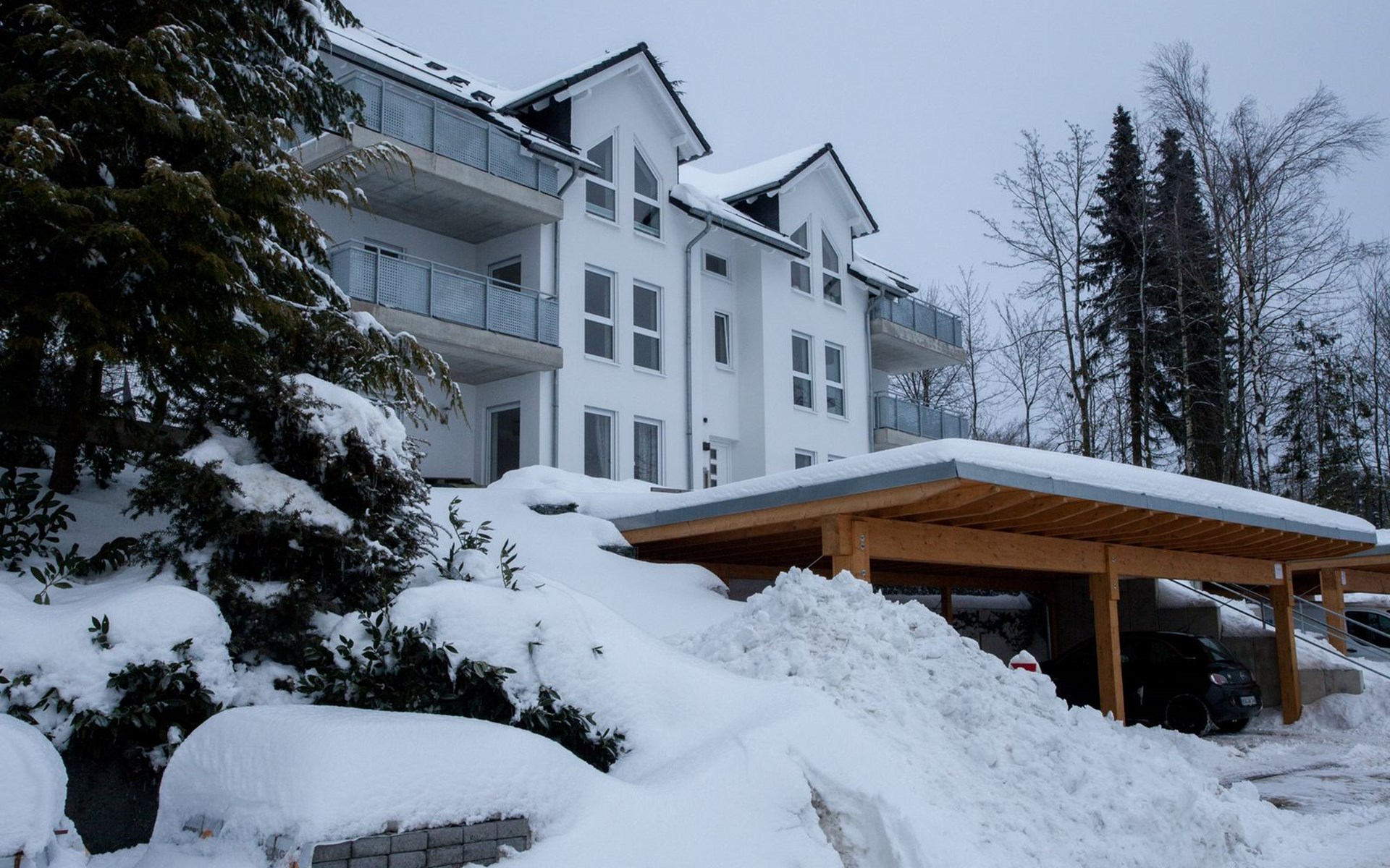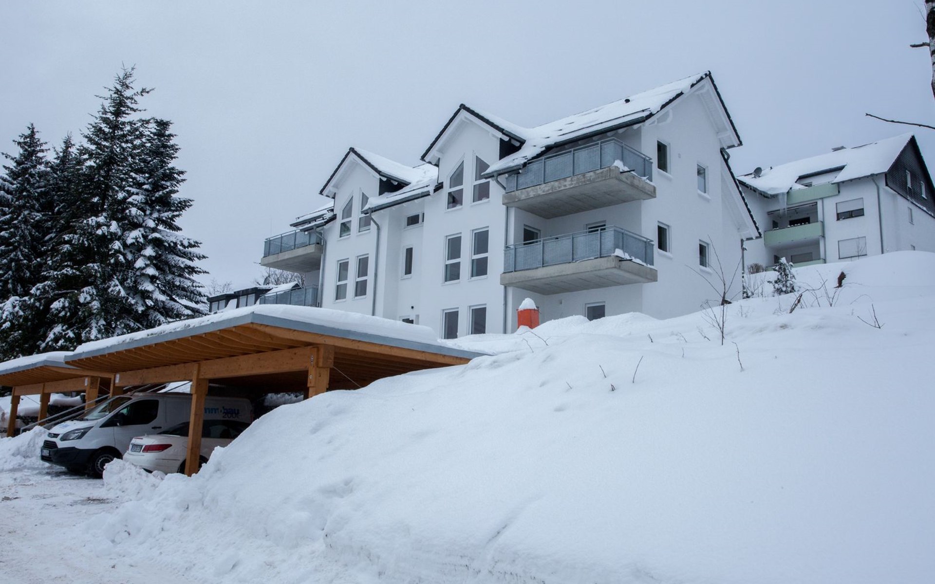 Unsere Wohnung befindet sich im Erdgeschoss einer neu erbauten (2016) kleinen Wohnanlage mit herrlichem Ausblick in Richtung Veltins Arena. Im Haus befindet sich ein Raum für Fahrräder, Ski und Schlitten. Der zur Wohnung gehörige Parkplatz ist überdacht und etwas breiter wie normal - somit ebenfalls behindertengerecht.