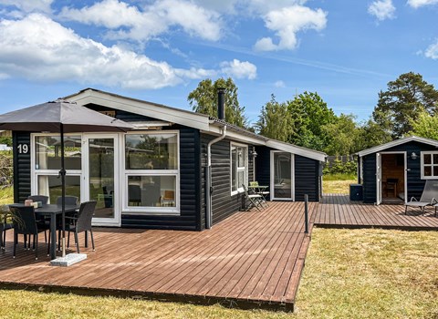 Hier können Sie Ihren Urlaub in einem gemütlichen Ferienhaus verbringen, das sich von traditionellen Ferienhäusern abhebt. Der Stil ist einfach und klar und der Raum ist gut genutzt, sodass Sie sowohl drinnen als auch draußen entspannen können.